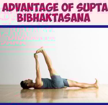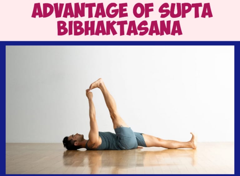 Supta Bibhaktasana, also known as Reclined Hand-to-Big-Toe Pose, is a restorative yoga posture that offers a wide array of physical, mental, and emotional benefits. This pose primarily targets the lower body and spine, but it also has a positive effect on overall body alignment and relaxation. Below are some of the key advantages of practicing Supta Bibhaktasana: 1. Improves Flexibility in the Hamstrings and Hips: One of the most notable benefits of Supta Bibhaktasana is its ability to improve flexibility, particularly in the hamstrings, calves, and hips. The pose stretches the muscles in the back of the leg (hamstrings) as well as the hip flexors. These areas are often tight due to prolonged sitting or lack of movement, and regular practice of Supta Bibhaktasana helps to release this tension, making the body more flexible and mobile. Over time, this enhanced flexibility can lead to greater ease in performing other yoga poses and everyday activities such as bending, walking, and climbing stairs. 2. Strengthens the Core Muscles: Although Supta Bibhaktasana is primarily a stretching pose, it also engages the core muscles to maintain balance and stability. To keep the extended leg straight and to prevent the pelvis from tilting, the core, including the abdominal and oblique muscles, must work. This engagement helps to strengthen the deep abdominal muscles, which are essential for good posture and spinal health. A strong core also supports the lower back, reducing the risk of strain or injury. 3. Relieves Lower Back Tension: Supta Bibhaktasana is particularly beneficial for people with tight lower backs or those who suffer from chronic back pain. The stretch to the hamstrings, glutes, and lower back helps to release built-up tension in the lumbar region. As the hamstrings lengthen, they reduce the pull on the pelvis, which in turn alleviates pressure on the spine. This can provide immediate relief for those experiencing discomfort in the lower back and help to prevent further strain. 4. Promotes Better Posture: This pose encourages proper body alignment and helps to develop awareness of the body's position in space (proprioception). As the core and lower body muscles engage during the stretch, the practitioner becomes more conscious of their posture. Consistent practice can lead to improved alignment throughout daily activities and an overall more upright and balanced posture. 5. Enhances Circulation: Supta Bibhaktasana can help improve circulation, particularly in the lower body. By stretching the legs and encouraging blood flow to the extremities, the pose enhances venous return (the flow of blood back to the heart). This can be particularly beneficial for people who sit for long periods or those who experience swelling or poor circulation in the legs. The gentle stretch promotes better blood flow, reducing feelings of heaviness and fatigue in the legs. 6. Supports Mental Clarity and Relaxation: The act of holding a deep stretch while focusing on the breath can help calm the nervous system. Supta Bibhaktasana promotes mindfulness and relaxation, which are key components of yoga. By concentrating on slow, steady breathing and allowing the body to stretch gently, the practitioner can reduce stress and anxiety. The pose encourages a sense of mental clarity and peace, making it an ideal choice for those seeking to quiet the mind or release emotional tension. 7. Stretches and Strengthens the Spine: The gentle pull on the legs in Supta Bibhaktasana can also help lengthen the spine. When the body stretches, it naturally lengthens the vertebrae, releasing any compression or tightness in the spinal column. This alleviates pressure on the intervertebral discs and helps to keep the spine healthy and flexible. A healthy, flexible spine is vital for overall mobility and reduces the risk of injury in other activities. 8. Reduces Stress and Fatigue: As a gentle restorative posture, Supta Bibhaktasana helps to release physical tension and emotional stress. The deep stretches combined with mindful breathing activate the parasympathetic nervous system (the body’s relaxation response), which reduces the production of stress hormones. This can be especially helpful for individuals who experience chronic stress or fatigue. The pose induces a feeling of relaxation that can linger long after the session, helping to improve overall well-being. 9. Improves Balance and Coordination: Supta Bibhaktasana requires balancing the body while stretching, which helps improve overall coordination. Although the pose is practiced while lying on the back, the need to engage the core muscles and keep the body aligned improves proprioception (awareness of body position) and balance. This enhanced coordination can be transferred to other physical activities and yoga poses, making the body more stable and agile. 10. Aids in Digestion: The gentle stretching of the abdominal region in Supta Bibhaktasana can stimulate the digestive organs, promoting better digestion and helping to relieve constipation or bloating. The relaxation aspect of the pose also helps reduce stress, which can often negatively affect the digestive system. By supporting healthy digestion, the pose contributes to overall health and comfort. 11. Accessible for All Levels: Supta Bibhaktasana is a highly accessible pose that can be modified to suit practitioners of all levels. Beginners can use props such as a yoga strap around the foot or place a bolster under the lower back for support. These modifications allow individuals to practice the pose comfortably, even if they have limited flexibility. Advanced practitioners can deepen the stretch by straightening the leg more or by gently pulling the leg closer to the body. Conclusion: Supta Bibhaktasana is a versatile and beneficial yoga posture that provides a range of advantages for the body and mind. It stretches and strengthens key muscle groups, including the hamstrings, hips, and core, while also promoting relax
