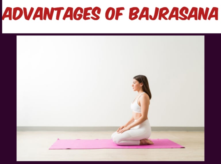 Bajrasana, also known as Vajrasana or the Thunderbolt Pose, is a simple seated yoga posture with profound physical, mental, and emotional benefits. Unlike many other yoga poses that require significant flexibility or strength, Bajrasana is accessible to most people and can be practiced by beginners. It is one of the few yoga poses that can be done immediately after eating, providing multiple advantages for the body and mind. Below are the key advantages of Bajrasana. 1. Improves Digestion: One of the most significant benefits of Bajrasana is its positive effect on digestion. This seated posture encourages the proper functioning of the digestive system by exerting gentle pressure on the abdomen. It helps stimulate the stomach and intestines, improving the flow of digestive juices and promoting better food absorption. Bajrasana is especially beneficial after meals, as it aids in the breakdown of food, prevents indigestion, and reduces bloating. It also helps relieve constipation and promotes regular bowel movements. 2. Promotes Better Posture: Bajrasana helps in improving posture by strengthening the muscles of the back and spine. In this pose, the spine is naturally aligned, encouraging an erect posture, which can alleviate the strain caused by slouching or poor sitting habits. Regular practice of Bajrasana helps to reduce the tension in the neck, shoulders, and upper back, thus preventing discomfort and improving overall spinal health. This is particularly advantageous for individuals who spend long hours sitting at desks or working on computers. 3. Reduces Stress and Anxiety: Bajrasana has a calming effect on the mind and body, making it effective in reducing stress and anxiety. This pose encourages deep and controlled breathing, which helps activate the parasympathetic nervous system, responsible for the relaxation response. By focusing on the breath and being in a meditative state, the body enters a state of calm, lowering heart rate and reducing feelings of nervousness or anxiety. The mindfulness aspect of Bajrasana allows practitioners to clear their minds and cultivate inner peace. 4. Strengthens the Lower Body: While Bajrasana is primarily known for its benefits to the upper body and digestion, it also strengthens the lower body, particularly the thighs, knees, and ankles. Sitting on your heels and maintaining the posture engages the quadriceps, calves, and ankles, helping to tone and strengthen these muscles. Over time, this posture can improve joint flexibility, especially in the knees and ankles, making it beneficial for people suffering from stiffness or limited mobility in the lower body. 5. Improves Blood Circulation: By sitting in Bajrasana, blood circulation to the lower limbs is improved. The posture promotes a healthy flow of blood through the legs and feet, which can help reduce swelling, varicose veins, and cramps in the lower extremities. It also helps reduce pressure on the heart, aiding in better circulation throughout the body. As the pose helps the body relax, it can be beneficial for individuals with high blood pressure, as it promotes relaxation and balances heart rate. 6. Boosts Mental Clarity and Focus: Bajrasana is also an excellent posture for improving concentration and mental clarity. When practiced in a calm and quiet space, it helps practitioners remain present and focused. The pose encourages mindfulness, which enhances concentration and memory retention. Regular practice of Bajrasana can improve attention span, making it beneficial for students, professionals, or anyone requiring mental sharpness and clarity. 7. Relieves Joint Pain: Bajrasana helps relieve joint pain, particularly in the knees, hips, and lower back. The seated position helps improve joint flexibility and alleviates discomfort. This posture can be especially beneficial for individuals who experience stiffness in the knees, as sitting on the heels helps stretch and strengthen the muscles around the knee joint. It can also provide relief from lower back pain by promoting better alignment and reducing strain on the spine. 8. Improves Mental and Physical Endurance: Bajrasana can improve both mental and physical endurance. Sitting in this position for extended periods requires focus and patience, which strengthens the mind's ability to endure discomfort. Over time, regular practice can help individuals build greater mental resilience, and this endurance can extend to other areas of life, helping to cope with physical challenges and stressful situations. 9. Aids in Weight Loss: While Bajrasana is not a vigorous workout, it can contribute to weight loss when practiced regularly. The pose helps improve digestion and metabolism, which is essential for effective weight management. Additionally, Bajrasana enhances the absorption of nutrients, ensuring that the body can process food more efficiently, reducing bloating and promoting a healthy metabolic rate. Conclusion: Bajrasana, despite its simplicity, provides a wide range of physical, mental, and emotional benefits. From improving digestion to enhancing posture, strengthening muscles, and reducing stress, this pose is a powerful tool in promoting overall health and well-being. It can be practiced by people of all ages and fitness levels, making it an excellent addition to any yoga routine. The calming, meditative nature of Bajrasana makes it particularly effective for mental clarity and relaxation, while its benefits for digestion and the lower body enhance overall physical health. Practicing Bajrasana regularly can lead to a more balanced and harmonious lifestyle.
