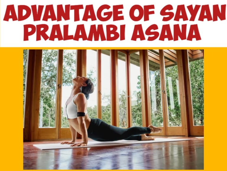 Sayan Pralambi Asana, commonly known as the Reclining Pose, is a simple yet deeply restorative yoga posture that involves lying on the back with the body extended and fully relaxed. Though it may appear straightforward, the benefits of this asana are profound. It is a highly effective posture for relaxation, stress relief, and body restoration. The benefits of practicing Sayan Pralambi Asana extend to physical health, mental well-being, and overall vitality. Here are the key advantages of practicing this pose regularly: 1. Promotes Deep Relaxation: Sayan Pralambi Asana is a powerful tool for achieving deep relaxation. By lying on your back with the body fully extended and supported, the pose helps release built-up tension in the body. When performed with mindful breathing, the body enters a state of relaxation, allowing the nervous system to shift from the sympathetic (fight or flight) response to the parasympathetic (rest and digest) state. This helps reduce overall stress levels, ease anxiety, and induce a sense of calm and tranquility. It is especially beneficial for individuals dealing with high stress or mental fatigue. 2. Improves Posture and Spinal Alignment: This asana helps to improve posture by allowing the spine to relax in a neutral position. Lying on the back with the body fully extended helps realign the spine, reducing tension in the lower back, neck, and shoulders. For those who experience poor posture due to prolonged sitting or standing, this pose can help stretch and release tight muscles in the back, aligning the spine and reducing discomfort. Over time, regular practice of Sayan Pralambi Asana promotes awareness of spinal alignment and encourages better posture during daily activities. 3. Relieves Back Pain: Back pain is a common issue for many individuals, particularly those who spend long hours sitting at a desk or engaging in activities that strain the spine. Sayan Pralambi Asana helps alleviate this discomfort by allowing the spine and back muscles to fully relax. The posture encourages a gentle extension of the spine, which can relieve pressure on the vertebrae and discs in the back. Additionally, the gentle stretch in the back and the proper alignment of the body during the pose can contribute to relief from chronic back pain, sciatica, and tension in the lower back. 4. Stimulates Circulation: Lying flat on the back helps encourage proper circulation throughout the body. The heart can pump blood more effectively when the body is in a relaxed position, and the muscles are not actively engaged. This improved circulation helps to deliver oxygen and nutrients to tissues, promote healing, and remove waste products more efficiently. For individuals who experience poor circulation, especially in the lower limbs, Sayan Pralambi Asana can promote blood flow to the extremities and improve venous return. The result is enhanced overall circulation and a reduced risk of circulatory issues. 5. Improves Breathing and Respiratory Function: Sayan Pralambi Asana encourages deep, diaphragmatic breathing. When the body is relaxed and fully supported, the diaphragm can move freely, allowing for deeper and more efficient breaths. This type of breathing helps expand the lungs and increase lung capacity, improving overall respiratory function. For individuals suffering from conditions such as asthma or shortness of breath, this asana can support better lung function by encouraging the use of the full capacity of the lungs and promoting easier, more rhythmic breathing. 6. Enhances Mental Clarity and Focus: In addition to its physical benefits, Sayan Pralambi Asana is also highly effective for mental relaxation and clarity. The deep relaxation that occurs in this pose helps clear mental clutter, reduces anxiety, and encourages mindfulness. As you lie in the pose and focus on your breath, the mind shifts from a state of agitation or stress to a state of calmness and mental clarity. Practicing this pose regularly can help improve concentration and cognitive function, making it easier to focus on tasks and think clearly throughout the day. 7. Supports Digestive Health: Lying on the back with the body fully relaxed allows the digestive organs to function more effectively. The gentle compression of the abdomen and the improved circulation encourage better digestion. In addition, the relaxation of the abdominal muscles can help reduce bloating and discomfort. Sayan Pralambi Asana stimulates peristalsis (the involuntary contractions of the digestive tract), which promotes the movement of food and waste through the digestive system. Regular practice of this asana can aid in relieving constipation and improving overall digestive health. 8. Promotes Emotional Balance: Sayan Pralambi Asana is not just beneficial for the physical body; it also helps to promote emotional balance. The deep relaxation this pose encourages can be highly effective in reducing emotional stress and cultivating a sense of peace. The practice of mindful breathing and the calming effects on the nervous system help reduce the body's physiological response to emotional stressors, making it easier to maintain emotional equilibrium. As a result, individuals who practice this pose regularly may feel more balanced, resilient, and emotionally stable. 9. Improves Flexibility: Although Sayan Pralambi Asana is not an intense stretch, it helps improve flexibility in the spine, hips, and legs over time. By gently lengthening the muscles in the back and legs, this asana encourages better muscle elasticity and flexibility. Additionally, the relaxation of the body in this pose helps release tension and tightness in the muscles, promoting greater range of motion in the joints. Over time, this increased flexibility can improve performance in other yoga poses and physical activities. 10. Supports Better Sleep: The relaxation benefits of Sayan Pralambi Asana extend to sleep quality as well. By calming the nervous system, reducing physical tens