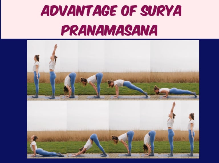 Surya Pranamasana, also known as Sun Salutation or "Surya Namaskar," is an ancient yoga practice consisting of a series of twelve dynamic postures performed in a specific sequence. The practice incorporates both physical postures (asanas) and controlled breathing (pranayama), offering a multitude of benefits for the body, mind, and spirit. Traditionally practiced in the morning to honor the Sun, Surya Pranamasana not only strengthens the body but also promotes mental clarity, emotional balance, and spiritual connection. Here are some of the key advantages of regularly practicing Surya Pranamasana. Physical Benefits: 1. Improved Flexibility: One of the most significant benefits of Surya Pranamasana is its ability to enhance flexibility. The various poses stretch and elongate the muscles, particularly in the back, legs, and shoulders. Over time, this leads to improved flexibility in the spine and joints, helping to reduce stiffness and prevent injury. 2. Increased Strength: Surya Pranamasana involves weight-bearing postures, such as plank pose, downward dog, and cobra pose. These poses help to strengthen major muscle groups in the arms, core, legs, and back. Regular practice enhances overall body strength, improving posture, stability, and endurance. 3. Improved Circulation: The continuous flow of movements in Surya Pranamasana promotes blood circulation throughout the body. In particular, the dynamic stretches and postures stimulate blood flow to the brain, muscles, and organs, improving oxygen delivery and aiding in detoxification. This boost in circulation can also help alleviate feelings of fatigue and improve overall vitality. 4. Supports Digestion: Certain poses in Surya Pranamasana, such as forward bends and stretches, stimulate the abdominal area and massage the digestive organs. This gentle internal massage supports digestion and helps regulate bowel movements. It also promotes better nutrient absorption and can help alleviate digestive issues like bloating and constipation. 5. Boosts Cardiovascular Health: Surya Pranamasana is a vigorous sequence of movements that increases the heart rate, providing an excellent cardiovascular workout. By regularly practicing Sun Salutation, the heart and lungs become stronger, improving cardiovascular health, stamina, and endurance. This can reduce the risk of heart disease and high blood pressure. 6. Aids Weight Loss: Surya Pranamasana is a full-body workout that burns calories and helps in weight management. The continuous movements stimulate metabolism and promote fat burning. Practicing Surya Namaskar regularly can assist in achieving and maintaining a healthy weight, while also promoting lean muscle mass. Mental and Emotional Benefits 1. Reduces Stress and Anxiety: The combination of physical movement, breath control, and mindfulness in Surya Pranamasana helps to activate the parasympathetic nervous system, promoting a relaxation response. This can significantly reduce stress, anxiety, and mental tension. The deep breathing techniques used in the practice calm the mind, encouraging a sense of tranquility and emotional balance. 2. Improves Focus and Concentration: Surya Pranamasana requires mindfulness and attention to detail. As the practice synchronizes breath with movement, it fosters a state of mental clarity and focus. The practice can improve concentration, memory, and cognitive function, making it a beneficial exercise for enhancing mental sharpness and productivity. 3. Enhances Mood: Regular practice of Surya Pranamasana has been shown to improve mood and boost emotional well-being. The physical exertion releases endorphins, the body's natural mood elevators, which help reduce symptoms of depression and improve overall emotional health. The practice also promotes a sense of gratitude and positivity, especially when practiced with intention. Spiritual Benefits 1. Promotes Mind-Body Connection: Surya Pranamasana harmonizes the body and mind by integrating physical movements with conscious breathing. This connection helps practitioners become more aware of their body, thoughts, and emotions. The mindfulness fostered during the practice promotes a deeper understanding of oneself and can lead to spiritual growth. 2. Increases Energy and Vitality: Surya Pranamasana is often practiced in the morning to connect with the Sun’s energy, which is believed to symbolize life, vitality, and growth. The movements stimulate the solar plexus, the body’s center of energy, which helps to increase vitality and awaken the body for the day ahead. Practitioners often report feeling energized and rejuvenated after completing the sequence. 3. Cultivates a Sense of Gratitude: Traditionally, Surya Pranamasana is practiced as a gesture of reverence to the Sun, a symbol of life and sustenance. By honoring the Sun during the practice, individuals develop a deeper sense of gratitude for life itself, as well as a profound connection to the natural world. This attitude of gratitude can extend to all areas of life, enhancing spiritual well-being. Conclusion: Surya Pranamasana offers a comprehensive range of benefits that touch upon all aspects of health and well-being. From improving physical strength and flexibility to reducing stress and enhancing mood, the advantages of this powerful sequence are numerous. The practice also nurtures mental clarity, emotional balance, and spiritual growth, making it a holistic approach to maintaining a healthy and balanced lifestyle. By incorporating Surya Pranamasana into a daily routine, individuals can experience improved physical fitness, mental resilience, and a deeper connection to themselves and the world around them.