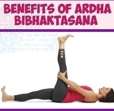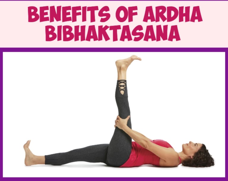 Ardha Bibhaktasana (Half-Reclined Hand-to-Big-Toe Pose) is a gentle yet effective yoga pose that offers several physical and mental benefits. This pose primarily targets the lower body and spine, and is a variation of Supta Bibhaktasana (Reclined Hand-to-Big-Toe Pose), performed while lying on the back and extending one leg at a time. The benefits of Ardha Bibhaktasana range from improving flexibility and strength to reducing stress and promoting relaxation. Here are some of the key benefits of practicing Ardha Bibhaktasana: 1. Improves Flexibility: Ardha Bibhaktasana is particularly effective in improving flexibility in the hamstrings, calves, and hip flexors. The stretch engages these muscle groups as the practitioner extends one leg while keeping the other leg grounded on the floor. Over time, this helps release tightness in the lower body, particularly for individuals who spend long hours sitting or those who engage in physical activities that tighten the hamstrings. As flexibility improves, the range of motion in the hips and legs increases, making it easier to perform other yoga poses and daily activities that require leg movement. 2. Strengthens the Core: While primarily a stretching pose, Ardha Bibhaktasana also engages the core muscles, particularly the abdominal and obliques, to help maintain stability and alignment in the body. Keeping the extended leg straight and the pelvis grounded requires the engagement of the abdominal muscles to prevent tilting or arching of the lower back. This core engagement strengthens the muscles that support the spine, helping to improve posture and reduce the risk of back injuries. A strong core also contributes to better balance and coordination in other yoga poses and physical activities. 3. Relieves Lower Back Pain: For individuals experiencing lower back pain, Ardha Bibhaktasana can provide significant relief. By stretching the hamstrings and lower back, this pose helps alleviate tension and pressure in the lumbar region. When the hamstrings are tight, they can pull on the pelvis, leading to misalignment of the spine and increased strain on the lower back. Stretching the hamstrings in this pose reduces this tension and helps to release the pull on the spine, offering relief from back pain. Additionally, the stretch helps to lengthen the spine, improving overall spinal health. 4. Enhances Hip Flexor Flexibility: Ardha Bibhaktasana stretches the hip flexors, which are commonly tight in individuals who sit for long periods. Tight hip flexors can lead to discomfort and contribute to poor posture, as they may cause the pelvis to tilt forward, creating an exaggerated curve in the lower back. By stretching the hip flexors, this pose helps to open the hips and release any tightness, allowing for a more neutral pelvic alignment. Improved flexibility in the hip flexors can also make it easier to perform other yoga poses that require hip mobility, such as lunges and squats. 5. Promotes Better Posture: The engagement of the core muscles and the alignment required to hold Ardha Bibhaktasana contributes to better overall posture. As the core is strengthened and flexibility is improved in the lower body, practitioners often notice an improvement in their standing and sitting posture. A strong core helps to stabilize the spine, reducing the risk of slumping or rounding the back. In daily life, better posture reduces the strain on the muscles and joints, leading to less discomfort and improved body mechanics. 6. Stimulates Circulation: Ardha Bibhaktasana can help improve blood circulation, particularly in the legs. By stretching the calves, hamstrings, and hips, the pose encourages blood flow to the lower extremities. This is particularly beneficial for individuals who experience poor circulation or swelling in their legs due to prolonged sitting or standing. The gentle stretch helps to stimulate venous return (the flow of blood back to the heart), reducing feelings of heaviness and fatigue in the legs. Improved circulation also supports the delivery of oxygen and nutrients to tissues, promoting overall health and vitality. 7. Reduces Stress and Anxiety: Like most yoga poses, Ardha Bibhaktasana has a calming effect on the nervous system. The practice of deep, mindful breathing while holding the pose helps to activate the parasympathetic nervous system (the relaxation response), reducing levels of the stress hormone cortisol. This relaxation helps to alleviate feelings of stress, anxiety, and tension. The meditative quality of the pose encourages practitioners to focus on their breath and bodily sensations, fostering a sense of inner calm and emotional balance. 8. Improves Balance and Stability: Though Ardha Bibhaktasana is a relatively simple pose, it requires balance and stability, especially in the core and pelvis. To maintain proper alignment, the practitioner must engage the abdominal muscles and ensure that the pelvis remains stable as one leg is extended. This engagement helps to improve overall balance and stability in the body, which can carry over into other yoga poses and activities that require coordination and control. 9. Aids in Digestion: The gentle stretching of the abdominal area in Ardha Bibhaktasana can aid in the functioning of the digestive system. As the muscles in the abdomen are lengthened and relaxed, blood flow to the digestive organs is improved. This can help to relieve discomfort from bloating or constipation. By promoting better circulation to the stomach and intestines, the pose supports efficient digestion and nutrient absorption. 10. Accessible for Most Practitioners: One of the key advantages of Ardha Bibhaktasana is its accessibility. The pose is relatively simple compared to more advanced yoga postures, making it suitable for practitioners of all levels. Even beginners can perform the pose with the help of modifications, such as using a yoga strap around the foot or bending the extended knee slightly if hamstring flexibility