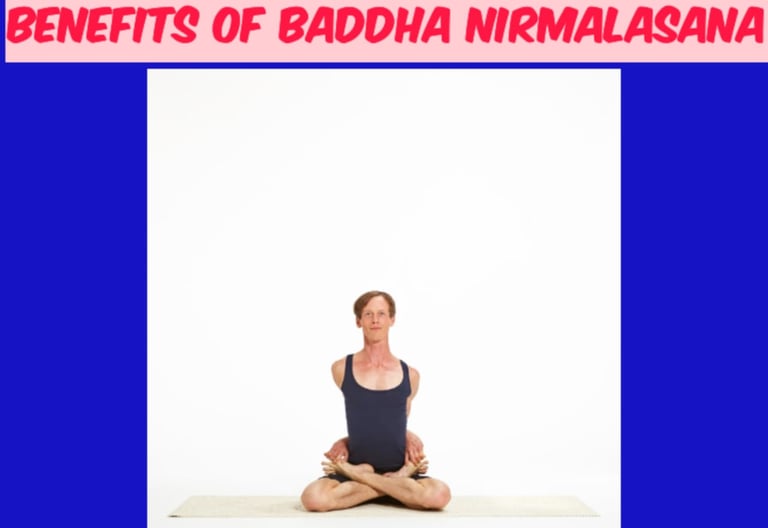 Baddha Nirmalasana, too known as Bound Lotus Posture or Bound Simple Posture, is a situated yoga pose that combines a conventional cross-legged position with a tie or clasp of the hands. This posture is a variety of the Padmasana (Lotus Posture), where the feet are put on the thighs, and the hands are interlocked behind the back. This situated pose offers various physical, mental, and enthusiastic benefits. Underneath are a few of the key focal points of practicing Baddha Nirmalasana: 1. Moves forward Flexibility: One of the essential benefits of Baddha Nirmalasana is its capacity to upgrade adaptability, especially in the hips, crotch, and lower legs. The position of the legs, with each foot resting on the inverse thigh, extends the hips and inward thighs. The flexion required to accomplish this posture opens up the crotch region, progressing adaptability and versatility in these locales. Normal hone can offer assistance discharge snugness in the lower body, which can be especially useful for people who spend long hours sitting or encounter firmness from physical activities. 2. Upgrades Posture: Baddha Nirmalasana empowers a straight spine, as it requires the professional to sit upright whereas keeping up to adjust of the body. This arrangement of the spine moves forward pose over time, especially for those who have a propensity to slump or endure from lower back torment. The situated position too empowers appropriate engagement of the center muscles, which makes a difference back the spine and keep up an upright pose. A steady hone of this posture can diminish the hazard of back issues and offer assistance keep up ideal spinal health. 3. Opens the Chest and Shoulders: When the hands are clasped behind the back, the chest opens, and the shoulders are drawn back. This activity makes a difference to check the forward slouching of the shoulders that frequently comes about from delayed sitting or work area work. As the chest grows, it energizes more profound breathing, which improves lung capacity and progresses generally respiratory work. By extending the chest and shoulders, Baddha Nirmalasana can moreover reduce pressure in these ranges, making a difference to discharge stretch and firmness gathered from every day activities. 4. Extends the Hip Flexors: The position of the legs in Baddha Nirmalasana makes a difference to extend and discharge pressure in the hip flexors. The hip flexors can be gotten to be tight from drawn out sitting, which can lead to lower back distress and destitute pose. The delicate extend given by this posture empowers the extending of the hip flexors, making a difference to progress in general adaptability and decrease distress in the lower back. This can too bolster superior portability in the hips, making it simpler to perform other physical exercises and yoga poses. 5. Advances Unwinding and Decreases Stress: Baddha Nirmalasana is a calming pose that can be utilized as a portion of an unwinding hone. The profound breathing related with this posture, combined with the center on keeping up an unfaltering and centered pose, makes a difference actuate the parasympathetic anxious framework, which is mindful for unwinding. This enactment diminishes the levels of push hormones like cortisol and makes a difference to reduce uneasiness. The center on breath control too permits the intellect to settle and gotten to be more grounded, making a sense of mental clarity and peace. 6. Encourages Mindfulness and Focus: The physical challenges posed by Baddha Nirmalasana require mindfulness and concentration to maintain the pose. By focusing on proper alignment, balance, and breath, practitioners are able to cultivate mental clarity and mindfulness. The pose encourages an inward focus, helping individuals to stay present at the moment. This practice of mindfulness can extend beyond the yoga mat, promoting a greater sense of awareness and focus in everyday life. 7. Stimulates the Digestive System: Sitting in Baddha Nirmalasana can stimulate the digestive organs and promote better digestion. The position of the legs and the compression of the abdomen encourage the movement of energy in the digestive system, which can help improve digestion and alleviate constipation. The deep breathing associated with the pose further aids in stimulating the abdominal organs and promoting a more efficient digestive process. By regularly practicing Baddha Nirmalasana, you can support better overall gut health and improve digestion. 8. Enhances Hip and Knee Health: Baddha Nirmalasana is particularly beneficial for individuals who want to improve the flexibility and health of their hips and knees. The deep hip stretch in this posture helps to reduce tightness and discomfort in the hip joints. It can also improve the mobility of the knee joints, especially when practiced regularly. This can be helpful for those recovering from knee or hip injuries, as well as for individuals who engage in activities like running or cycling that may place strain on these areas. The posture can help alleviate joint stiffness and improve overall flexibility and strength. 9. Balances the Energy: In yoga, certain poses are believed to influence the flow of prana (life energy) throughout the body. Baddha Nirmalasana is said to help balance the energy, particularly by opening the heart center (Anahata chakra) and the root center (Muladhara chakra). As the chest expands and the hips open, the flow of energy is enhanced, creating a sense of balance and harmony within the body. This flow of prana can also contribute to emotional healing, fostering a sense of openness, compassion, and stability. 10. Improves Mental Health and Emotional Well-Being: Practicing Baddha Nirmalasana helps foster a sense of groundedness and emotional stability. The deep stretches and mindful breathing promote relaxation and help reduce the mental clutter that can lead to stress and anxiety. The focus on breath and body awareness helps individuals becom