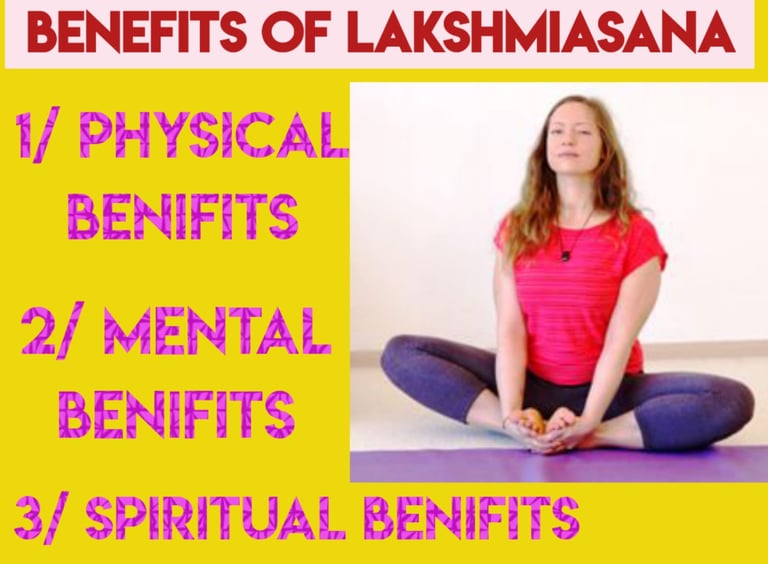 Lakshmi Asana (also referred to as “Goddess Pose” in yoga or a meditative posture symbolizing abundance) offers several physical, mental and spiritual benefits. These benefits can vary depending on how the Asana is practiced (as a seated meditation posture or a dynamic squat-like pose) . Here’s an overview. Physical Benefits 1. Strengthens Muscles: The dynamic version of Lakshmi Asana strengthens the thighs, hips, and glutes while enhancing overall lower body endurance. 2. Improves Flexibility: It stretches the hips, groin and inner thighs, increasing mobility in these areas. 3. Improves Digestion: Sitting in a grounded, cross-legged or squatting posture supports the digestive system by stimulating abdominal organs. 4. Enhances Pelvic Health: Beneficial for women, as it strengthens the pelvic floor muscles and supports reproductive health. 5. Improves posture: Encourages alignment of the spine and stability in the core, reducing strain on the back. Mental Benefits 1. Promotes Relaxation: When used as a meditation posture, Lakshmi Asana calms the mind and reduces stress. 2. Increases Focus and Concentration: Holding this pose while meditating helps sharpen mental clarity. 3. Balances Energy: It harmonizes the body’s energy centers (chakras), particularly the sacral chakra, associated with creativity and emotional stability. Spiritual Benefits 1. Symbol of Abundance: Lakshmi Asana connects practitioners with the energy of Lakshmi, the goddess of wealth and prosperity, promoting a sense of gratitude and abundance. 2. Grounding and centering: Sitting close to the ground fosters a deeper connection with the earth, helping to balance spiritual energy. 3. Opens Heart and Mind: Practicing this Asana with devotion can inspire feelings of love, compassion and openness. 4. Aids Meditation and Spiritual Growth: This posture encourages deeper states of meditation, allowing practitioners to connect with higher consciousness. It nurtures spiritual awakening by harmonizing the body’s chakras and balancing energy flows. Conclusion Lakshmi Asana is a transformative pose that combines physical strengthening with mental relaxation and spiritual connection. Whether practiced as a dynamic yoga posture or a seated meditative pose, it offers a wide range of benefits, making it a powerful addition to any wellness routine. By incorporating this Asana into your practice, you can cultivate physical strength, mental peace and spiritual abundance.