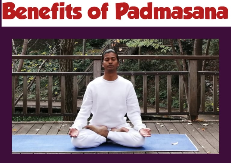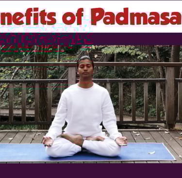Padmasana, also known as the Lotus Pose, is a traditional seated posture commonly practiced in yoga for meditation and physical health. It is characterized by crossing the legs with each foot placed on the opposite thigh, and the hands resting on the knees in a mudra (gesture), usually Jnana or Dhyana Mudra. This pose is revered for its ability to create a sense of calm, balance, and physical alignment. Below are some of the key benefits of practicing Padmasana regularly. 1. Improves Posture and Spinal Alignment: Padmasana promotes a straight back and proper posture by encouraging the alignment of the spine. Sitting in the pose naturally opens the chest and stretches the spine, helping to correct slouching and improve overall body alignment. This helps in reducing the strain on the back and neck, especially for those who spend long hours sitting. 2. Enhances Flexibility in the Hips, Knees, and Ankles: One of the most notable benefits of Padmasana is its ability to increase flexibility in the lower body, particularly in the hips, knees, and ankles. The pose requires the legs to be crossed in a specific manner, which stretches and strengthens the hip flexors, quadriceps, and inner thighs. With consistent practice, the flexibility in these areas improves, making it easier to sit in the pose for longer periods and enhancing overall lower-body flexibility. 3. Promotes Mental Clarity and Focus: Padmasana is widely used for meditation due to its ability to calm the mind and promote mental clarity. The stable, grounded nature of the posture helps maintain concentration by fostering a deep sense of focus and awareness. It encourages mindfulness and can help practitioners achieve a meditative state, allowing for improved mental clarity and emotional stability. 4. Reduces Stress and Anxiety: The deep breathing and mindfulness fostered by Padmasana have profound effects on the nervous system, activating the parasympathetic nervous system, which is responsible for relaxation. The practice helps reduce the levels of cortisol (the stress hormone), making it an excellent tool for relieving stress and anxiety. By calming the mind and body, it promotes a feeling of peace and tranquility. 5. Enhances Circulation: Padmasana helps improve circulation throughout the body, particularly in the lower limbs. The pose encourages better blood flow to the pelvic area and legs, and by opening the hips and stretching the groin, it allows for the release of any tension or blockages in the lower body. This can alleviate swelling or discomfort in the legs and reduce the risk of circulatory problems. 6. Stimulates Digestive Health: Sitting in Padmasana encourages the proper alignment of the abdominal organs, which helps stimulate digestion. The position of the pelvis in this pose creates an optimal opening in the abdomen, which can help reduce bloating, constipation, and discomfort related to digestion. Additionally, practicing deep abdominal breathing while in Padmasana can stimulate the digestive process. 7. Promotes Balance of the Root Chakra: In yogic philosophy, Padmasana is associated with the Root Chakra (Muladhara), which governs feelings of safety, grounding, and stability. Practicing Padmasana regularly helps to balance and strengthen this chakra, promoting a sense of security and connection to the earth. This is particularly beneficial for individuals feeling emotionally or mentally ungrounded. 8. Improves Breathing and Lung Capacity: The steady and rhythmic breathing promoted in Padmasana can help improve lung capacity and overall respiratory health. As the posture opens the chest and allows for deeper inhalations, it can enhance oxygen intake and increase energy levels. This is particularly helpful for individuals with respiratory conditions such as asthma or those seeking to improve lung function. 9. Detoxifies the Body: Padmasana encourages deep, mindful breathing that helps to release toxins from the body. As the diaphragm expands with each breath, it supports the movement of lymphatic fluids and helps with the elimination of waste products, promoting detoxification. The deep breathing also increases the oxygen supply to the cells, which aids in cleansing the body from within. 10. Develops Patience and Discipline: Since Padmasana requires a certain level of flexibility and endurance, it teaches patience and discipline. Practitioners often start with difficulty in sitting for long periods but gradually develop the ability to stay in the pose comfortably. This not only cultivates physical stamina but also mental discipline and perseverance. Conclusion: Padmasana is much more than just a physical posture—it serves as a powerful tool for mental, emotional, and spiritual growth. Through consistent practice, it provides a wide range of benefits, including improved posture, flexibility, mental clarity, stress relief, and enhanced digestion. The deeper effects of Padmasana also extend to promoting emotional balance and connection to one’s inner self. As such, it remains a cornerstone of yoga practice for both beginners and advanced practitioners alike.