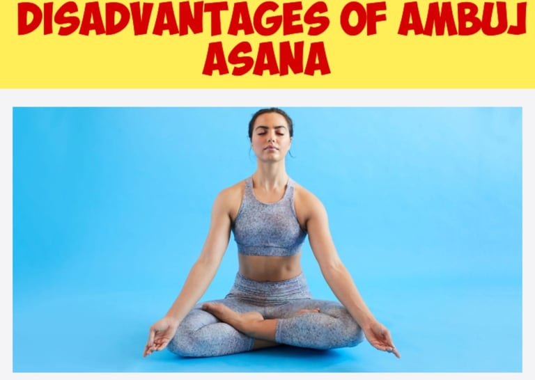 While Ambuj asana (Lotus Pose) offers numerous physical, mental, and spiritual benefits, it is important to recognize that, like any yoga posture, it may not be suitable for everyone. There are several potential disadvantages and limitations associated with this pose, particularly for those with certain physical conditions or limitations. Below are some of the key disadvantages and precautions to consider when practicing Ambujasana: 1. Requires High Flexibility in the Hips and Ankles One of the main challenges of Ambuj asana is the level of flexibility required, particularly in the hips, knees, and ankles. For individuals with tight hip flexors or limited hip rotation, sitting in the full Lotus Pose can be uncomfortable or even painful. Similarly, people who have tight ankles or a lack of mobility in the lower limbs may find it difficult to position the feet properly on the thighs. Solution: If you struggle with flexibility, consider using modifications such as sitting on a cushion or block to elevate the hips, which can help alleviate pressure on the knees and hips. Alternatively, you can practice a less intense version, such as Susana (Easy Pose) or Area Ramayana (Half Lotus Pose), where only one leg is crossed. 2. Strain on the Knees and Joints For those with knee problems or a history of joint injuries, Ambuj asana can place excessive strain on the knees. The posture requires the knees to be positioned close to the floor, which may cause discomfort or exacerbate existing knee pain. The position of the legs, particularly when one foot is placed on the opposite thigh, can create pressure on the knees, potentially leading to injuries if not performed with caution. Solution: If you have knee issues, it’s important to avoid forcing the legs into the pose. Modifications, such as using cushions under the knees or opting for a gentler seated position, can help reduce pressure on the knee joints. Always listen to your body and avoid pushing beyond your flexibility or comfort level. 3. Potential Numbness or Tingling in the Legs Because Ambuj asana involves crossing the legs in a specific manner, there is the potential for numbness or tingling in the legs and feet due to restricted blood circulation. The position of the legs can sometimes compress nerves or blood vessels, leading to a temporary loss of sensation, which is not uncommon in prolonged practices. If the blood flow to the lower limbs is restricted, it could cause discomfort or pins and needles. Solution: It is crucial to change the position of the legs periodically if you start to feel numbness or tingling. Gently uncross your legs and stretch them out to restore proper circulation. Practice the pose for shorter durations at first and gradually increase the time as your body becomes accustomed to it. 4. Not Suitable for Individuals with Severe Back or Spinal Issues Ambuj asana requires a straight and erect spine, which can be challenging for individuals with back or spinal problems. Those with lower back pain, sciatica, herniated discs, or any spinal misalignment may find it difficult to maintain the proper posture without straining the back muscles. If the spine is not properly aligned, there is an increased risk of discomfort and injury. Solution: Individuals with back issues may need to modify the pose or practice alternative seated postures that provide more support for the spine. Using a bolster or cushion under the hips can help promote a natural curve in the spine and alleviate stress on the lower back. Consulting a qualified yoga instructor or a healthcare professional before attempting this pose is advisable if you have a history of back pain. 5. Difficult for Beginners or Inexperienced Practitioners Ambuj asana can be quite challenging for beginners, especially those who are not accustomed to sitting in a cross-legged position for extended periods. The difficulty of achieving proper alignment, maintaining the pose for long periods, and dealing with physical discomfort may deter some practitioners from attempting the posture altogether. Additionally, if the pose is performed incorrectly, it can lead to strain in various areas of the body. Solution: Beginners should start with simpler seated postures, such as Susana (Easy Pose), and gradually work on improving flexibility and strength in the hips, knees, and spine before attempting Ambuj asana. It’s important to build a foundation of flexibility and awareness in the body over time. 6. Discomfort in the Feet and Ankles Placing the feet on the opposite thigh in Ambuj asana can cause discomfort in the ankles and feet, especially if the feet are not positioned correctly. For individuals with sensitive ankles, this position can put undue pressure on the joints, leading to pain or inflammation. People who have flat feet or other foot-related issues may also find this pose difficult to execute comfortably. Solution: To reduce discomfort in the feet and ankles, make sure to position your feet properly on the thighs and avoid placing unnecessary weight on them. If you feel pain in the feet or ankles, it is important to come out of the pose and rest. Using supportive cushions or blocks can also alleviate pressure on the lower limbs. 7. May Not Be Suitable for Pregnant Women Pregnant women, particularly those in later stages of pregnancy, may find Ambuj asana uncomfortable or impractical due to the pressure on the abdomen and the difficulty in sitting in a cross-legged position for long periods. The posture may also restrict proper blood flow to the lower body and increase discomfort in the pelvic region. Solution: Pregnant women should avoid deep, seated postures like Ambuj asana and opt for alternatives that provide more comfort and support. It’s always best to consult a healthcare provider or a yoga instructor specializing in prenatal yoga for guidance on safe practices during pregnancy. 8. Difficulty for Those with Limited Hip or Groin Mobility Ambuj asana requires significant