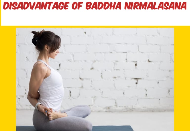 Baddha Nirmalasana (Bound Easy Pose) is a beneficial yoga posture that promotes flexibility, balance, and mindfulness. However, like any yoga pose, it may not be suitable for everyone, particularly those with certain physical limitations or health concerns. Here are some potential disadvantages and precautions to consider when practicing Baddha Nirmalasana: 1. Hip and Knee Discomfort: One of the primary challenges of Baddha Nirmalasana is the strain it can place on the hips and knees. The position requires the feet to be placed on opposite thighs, similar to the traditional Padmasana (Lotus Pose). This can be very uncomfortable, especially for individuals with tight hips, limited flexibility, or knee problems. For those with conditions such as knee arthritis, sacroiliac joint issues, or tendinitis, this pose could aggravate the joints, leading to discomfort or pain. It is essential to approach this pose with care and avoid forcing the feet onto the thighs if it causes strain. 2. Limited Flexibility: Baddha Nirmalasana requires significant flexibility in the hips, knees, and ankles. For individuals who are not yet flexible in these areas, achieving the correct posture may be difficult. If the hips or knees are not sufficiently flexible, it can be challenging to place the feet on the thighs, which may lead to improper alignment or even injury. Over time, forcing the pose can lead to overstretching or straining muscles, ligaments, or tendons. For beginners or individuals with limited flexibility, it may be advisable to start with more accessible seated poses and gradually build up flexibility. 3. Shoulder and Wrist Strain: In this pose, the hands are clasped behind the back, which requires shoulder mobility and flexibility. People who have shoulder injuries or limited range of motion may find it challenging or painful to hold the arms behind the back in the binding position. If the shoulders are not properly opened or aligned, attempting to clasp the hands could lead to strain, discomfort, or injury. In some cases, people may also feel discomfort in their wrists from the position of the hands, especially if the hands are forced to clasp in a way that puts pressure on the wrist joints. 4. Spinal Strain: Baddha Nirmalasana encourages a long, straight spine, which is vital for maintaining proper posture and alignment. However, individuals with spinal conditions like herniated discs, sciatica, or lower back pain may experience discomfort or exacerbation of their condition while trying to maintain this pose. If the posture is not properly supported by the core muscles or if there is excessive rounding of the lower back, it can lead to strain in the spine. It is important to ensure that the spine remains in a neutral position and that the back is not overarched or compressed during the pose. 5. Difficulty Maintaining Balance: For beginners or those with limited core strength, maintaining balance in Baddha Nirmalasana can be difficult. The pose requires not only flexibility but also the engagement of core muscles to stay upright and stable. Those who lack the necessary strength may find themselves slouching or collapsing in the posture, which can lead to improper alignment and discomfort. Maintaining proper posture requires continuous mindfulness, and without the proper balance, it can be difficult to enjoy the full benefits of the pose. 6. Not Reasonable for Pregnant Women: Pregnant ladies, particularly those in their moment or third trimesters, ought to dodge Baddha Nirmalasana. The position of the legs and the weight on the midriff can cause inconvenience or confine circulation, particularly as the stomach develops. Furthermore, the profound hip opening and the exertion of sitting in a cross-legged position can strain the pelvic region and lower back, which may as of now be beneath stretch amid pregnancy. Specialists who are pregnant ought to counsel with a yoga educators prepared in pre-birth yoga to investigate more appropriate postures that give comparable benefits without risk. 7. Neck Strain: Although the fundamental center of the posture is on the hips, shoulders, and spine, the arrangement of the head and neck is moreover significant for keeping up consolation and security. If the chest is excessively lifted or the shoulders are too much pulled back whereas clasping the hands, the neck may conclusion up straining to keep up arrangement with the spine. This strain may result in pressure or distress in the neck and upper back muscles. Specialists ought to center on keeping the neck in a impartial position and dodge overextending the chest to anticipate neck strain. 8. Trouble in Coming to the Hands Behind the Back: The authoritative of the hands behind the back requires bear adaptability and versatility. For those with tight shoulders or restricted extend of movement, clasping the hands behind the back may be physically outlandish or cause inconvenience. If the hands cannot reach each other, the posture will not give its full benefits in terms of chest opening and bear extending. To dodge dissatisfaction or harm, professionals can utilize a yoga strap to interface their hands until they create adequate adaptability to clasp their fingers together. In a few cases, utilizing a strap is vital to guarantee appropriate arrangement and maintain a strategic distance from straining the shoulders. 9. Hazard of Overstretching: As with numerous yoga postures, there is a chance of overstretching when practicing Baddha Nirmalasana. Since the posture requires adaptability in numerous regions of the body, people may be enticed to thrust themselves as well difficult to accomplish the craved position, especially when attempting to bring the feet closer to the thighs or develop the chest opening. Overstretching can lead to muscle strains, tendon harm, or joint issues, especially in the hips, knees, and shoulders. It is basic to tune in to the body and maintain a strategic distance from constraining any angl