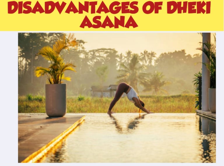 Dheki Asana is an energetic and useful yoga pose, but like all physical hones, it is imperative to approach it with mindfulness and caution. Whereas it offers various points of interest such as moved forward adaptability, quality, and adjust, there are moreover certain drawbacks and dangers that require to be considered, particularly for fledglings or people with particular wellbeing concerns. Underneath are a few of the potential drawbacks of practicing Dheki Asana: 1. Strain on the Lower Back: One of the essential impediments of Dheki Asana is the potential strain it can put on the lower back if not performed accurately. The pose requires engagement of the center muscles to back the spine, and if the center is not adequately solid or actuated, the lower back may compensate for the need of solidness. This can lead to inconvenience or harm in the lumbar locale. Those with existing lower back torment or spinal issues ought to approach Dheki Asana with caution and may need to counsel with a healthcare supplier or experienced yoga educators some time recently endeavoring the pose. 2. Knee and Hip Stress: Dheki Asana includes a noteworthy sum of twisting and extending in the legs, especially the knees and hips. If appropriate arrangement is not kept up or if the body is constrained into profound developments without satisfactory adaptability or quality, it can put push on these joints. People with pre-existing knee or hip issues, such as joint pain or tendon issues, may involvement distress or irritation of their condition whereas performing the pose. Over time, over the top weight on the knees or hips seem lead to joint torment or damage, particularly if the Asana is practiced with disgraceful form. 3. Trouble with Balance: The center of Dheki Asana includes keeping up adjust whereas lifting and bringing down the legs. This requires great coordination, concentration, and muscle control, especially in the center and lower body. For fledglings or those with restricted adjust abilities, this posture can be challenging and may lead to precariousness or falls. In the early stages of learning the Asana, it is vital to hone the posture with bolster or beneath the direction of an experienced teacher to anticipate injury. 4. Expanded Hazard of Strain in the Hip Flexors: Dheki Asana requires dynamic engagement of the hip flexors as you lift and lower your legs. For people with tight or powerless hip flexors, performing this posture can worsen inconvenience or cause muscle strain. Tight hip flexors are a common issue for individuals who sit for long periods or have constrained versatility in the hips, and overextending them in the hone may result in damage or distress. It is imperative to warm up the hip flexors and perform preliminary extends some time recently endeavoring Dheki Asana to anticipate overstretching or strain. 5. Potential for Intemperate Intensity: For a few people, the cadenced, energetic nature of Dheki Asana can lead to over the top escalated if practiced as well rapidly or without appropriate control. This may lead to muscle weakness, intemperate effort, or strain. It is fundamental to tune in to your body and dodge pushing past your limits. The developments ought to be moderate, controlled, and centered, and it is imperative to construct quality continuously over time to maintain a strategic distance from burnout or injury. 6. Not Appropriate for Pregnant Women: As with numerous yoga postures that include the center and lower body engagement, Dheki Asana is by and large not suggested for pregnant ladies. The seriously center engagement and the physical exertion included in lifting and bringing down the legs might put pointless weight on the stomach region, which may not be appropriate for hopeful moms. Also, adjust and coordination challenges in this posture seem increment the chance of falling, advance expanding the dangers for pregnant practitioners. 7. Exacerbation of Pre-Existing Conditions: Dheki Asana involves bending and lifting the legs, which can be problematic for individuals with pre-existing conditions affecting the hips, knees, or lower back. For example, individuals with herniated discs, sciatica, or sacroiliac joint dysfunction should approach this pose cautiously. The movements in Dheki Asana may worsen symptoms related to these conditions, especially if the Asana is performed with improper alignment, lack of core strength, or excessive intensity. It is crucial for individuals with pre-existing medical conditions to modify the practice as needed or avoid it altogether if it causes discomfort. 8. Overuse of the Hip Muscles: The movement in Dheki Asana requires significant activation of the hip muscles. While this is beneficial for strengthening and stretching the hips, overuse or repetitive practice without adequate rest can lead to hip fatigue or muscle strain. Muscles in the hip flexors and thighs can become overstretched or overworked, particularly in individuals who already engage in intense physical activity. To avoid overuse injuries, it is important to incorporate rest days and practice balance in your routine. 9. Lack of Proper Warm-Up: A lack of proper warm-ups before performing Dheki Asana can lead to muscle strains, especially in the hips, lower back, and legs. It is essential to properly warm up these areas before attempting this asana to ensure the muscles are flexible and prepared for the dynamic movement. Without proper warm-up, sudden movements or deep stretches can cause strain or injury. A comprehensive warm-up that includes gentle stretches for the lower back, hips, and legs is necessary to reduce the risk of injury. 10. Not Beginner-Friendly: Dheki Asana can be quite challenging for beginners, as it requires a combination of core strength, flexibility, and balance. Those new to yoga may struggle to maintain proper alignment and coordination while performing this pose. Additionally, the fluid leg movements can be difficult to master without prior 