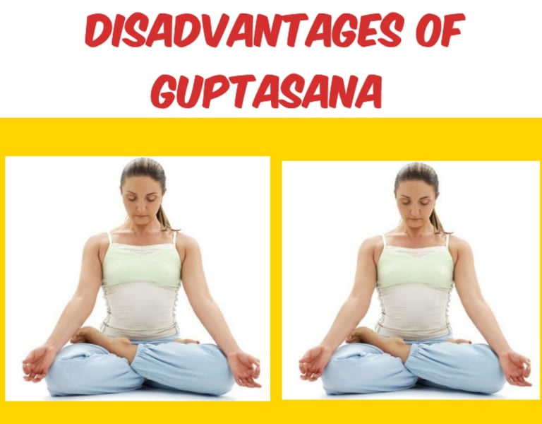 Guptasana, or the "Hidden Pose," is a seated yoga posture that can offer various benefits, including improved posture, core strength, and mental clarity. However, like any other physical practice, it is important to be aware of the potential disadvantages or challenges that may arise from practicing Guptasana. Although this pose is generally accessible and beneficial for most practitioners, it may not be suitable for everyone, especially if certain physical conditions or limitations are present. Here are some potential disadvantages of Guptasana: 1. Difficulty for Beginners: For beginners or those new to yoga, Guptasana can be challenging to perform correctly. The cross-legged position may feel uncomfortable for people with tight hips, knees, or lower back issues. Sitting for an extended period in this posture can cause discomfort, especially if the body is not accustomed to sitting on the floor. In such cases, practitioners may struggle to maintain the posture for long periods, which could hinder the benefits of the practice. For beginners, it may take time to build up the flexibility and endurance required to hold the pose comfortably. 2. Pressure on the Knees and Hips: The cross-legged position in Guptasana places pressure on the knees, hips, and lower back. Individuals who have knee injuries or conditions such as arthritis, sciatica, or hip bursitis may find the pose painful or aggravating. Sitting with the legs crossed for an extended period can increase pressure on the knee joints, which may lead to discomfort or inflammation, especially if there is existing tension or injury in these areas. Additionally, those with limited flexibility in the hips may struggle to sit in the position without strain, making the pose less effective or even harmful in certain cases. 3. Discomfort in the Lower Back: Although Guptasana is designed to help align the spine and relieve back tension, some practitioners may experience discomfort in the lower back while sitting for an extended period. Individuals with pre-existing back problems, such as herniated discs or lower back pain, may find that the posture exacerbates their discomfort. Without proper spinal alignment, sitting for long periods in this position may lead to muscle stiffness or pain in the lower back. For those with chronic back issues, it is essential to approach Guptasana with caution and consider modifications to avoid strain. 4. Circulation Issues: Sitting in a cross-legged position for an extended period can restrict blood flow to the lower limbs, particularly in the feet and legs. This can be particularly problematic for individuals with poor circulation or conditions like varicose veins, edema, or neuropathy. As the body remains stationary, blood flow to the feet and legs may become impaired, leading to numbness, tingling, or swelling. In such cases, it may be necessary to adjust the position of the legs or change the posture periodically to avoid circulation problems. 5. Risk of Overexertion: Like any yoga pose, Guptasana requires a balance between relaxation and effort. Overexerting oneself to maintain the posture or pushing beyond one's physical limits can lead to strain and discomfort. Those who push themselves too hard may inadvertently create tension in the body, which can negate the calming and grounding benefits of the pose. It's important to listen to the body and avoid forcing the legs into a position that feels too intense, as this can lead to injury. Over time, the body will become more flexible, and sitting in this position will feel easier, but pushing too hard early on can result in strain. 6. Mental Discomfort: Although Guptasana is generally a meditative posture, sitting still for an extended period can sometimes lead to mental discomfort or restlessness, especially for those new to meditation or mindfulness practices. The requirement for stillness and focus can feel challenging for individuals who are used to being constantly active or distracted. Mental distractions or discomfort can arise, making it difficult to remain present and calm in the pose. It may take practice and patience to build the mental discipline needed to sit in stillness and maintain a sense of relaxation. 7. Not Suitable for Everyone: Guptasana may not be appropriate for individuals with certain medical conditions or physical limitations. People with severe knee, hip, or back problems, as well as those with certain cardiovascular issues or circulation problems, may need to avoid this pose or modify it significantly. It is always advisable for individuals with medical concerns to consult with a healthcare provider or a qualified yoga instructor before attempting new postures, including Guptasana. 8. Strain on the Pelvic Floor: Some practitioners may inadvertently engage the pelvic floor muscles too much in an effort to maintain stability in the pose. This excessive contraction can lead to strain on the pelvic floor, particularly for individuals who already have tightness or tension in that area. It’s important to maintain a gentle engagement of the pelvic floor rather than overdoing it, as excessive tension in this area can lead to discomfort or even long-term imbalances. 9. Limited Upper Body Engagement: While Guptasana is beneficial for the lower body and encourages awareness of the breath and spine, it may not provide much engagement for the upper body. Those who seek a more dynamic yoga posture that involves the arms, shoulders, or chest may find Guptasana lacking in terms of upper body activation. For a well-rounded practice, it is important to incorporate other poses that engage the arms, chest, and upper back. Conclusion; While Guptasana offers several advantages, including improved posture, increased flexibility, and mental clarity, it is not without its challenges and disadvantages. People with pre-existing knee, hip, or back issues may find the posture uncomfortable or even harmful without modifications. Additionally, beginners or th