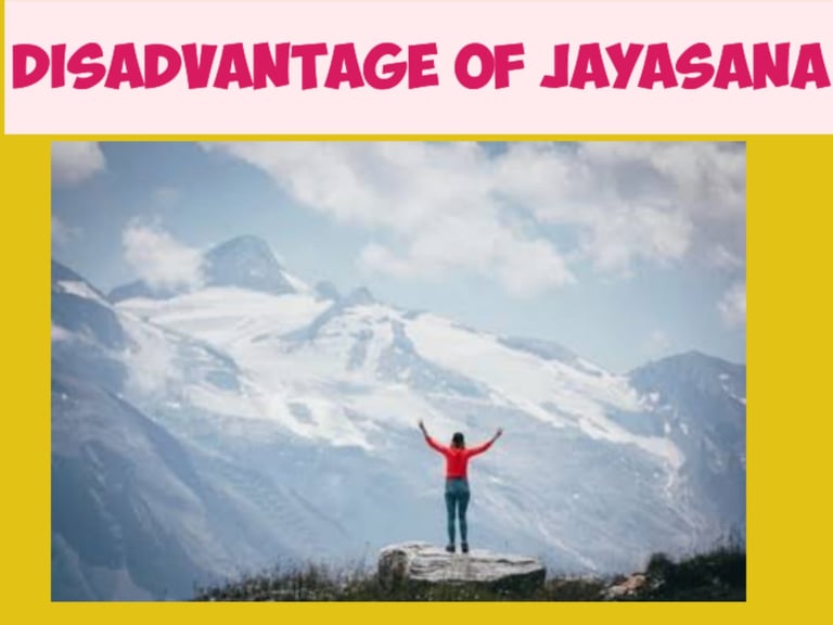 While Jayasana (Victory Pose) offers numerous benefits, as with any yoga posture, it is important to recognize that it may not be suitable for everyone. There are potential disadvantages or risks associated with this asana, especially if performed incorrectly or by individuals with certain physical limitations. Below are some of the key disadvantages of practicing Jayasana: 1. Risk of Knee Strain or Injury: One of the main challenges in Jayasana is the positioning of the front knee. The pose requires the front knee to be bent at a 90-degree angle while the back leg remains extended behind. If the knee is not properly aligned—particularly if it extends beyond the toes—this can place unnecessary strain on the knee joint, leading to discomfort or even injury. Individuals with knee issues, such as arthritis, ligament injuries, or general weakness, may find it difficult or painful to maintain the correct alignment in the front knee. To avoid knee strain, it is important to ensure that the knee does not move past the toes in the bent leg and that the weight is evenly distributed between both legs. For those with existing knee issues, it may be advisable to modify the pose by not bending the front knee too deeply or using props like blocks for support. 2. Lower Back Strain: Jayasana requires a certain degree of backbend and spinal extension, especially when raising the arms overhead and engaging the core. However, if the core muscles are not properly engaged or if the lower back is over-extended, this can lead to strain in the lumbar spine (lower back). Some individuals may feel discomfort or tension in the lower back, particularly if they have pre-existing conditions such as herniated discs, sciatica, or chronic lower back pain. To avoid lower back strain, it is essential to focus on engaging the core muscles throughout the pose. This helps stabilize the spine and prevents over-arching in the lower back. Practitioners should also avoid lifting the chest too high or leaning excessively backward, as this can place unnecessary pressure on the lumbar spine. 3. Shoulder Tension or Discomfort: While Jayasana opens the chest and stretches the shoulders, it can also place significant demands on the shoulder joints. The arms are raised overhead and held in position, which can lead to shoulder strain or discomfort if the shoulders are not properly aligned. People with shoulder injuries, such as rotator cuff problems or shoulder impingement, may find it difficult or painful to maintain the arm positioning required for the pose. To prevent shoulder strain, it is important to keep the shoulders relaxed and avoid lifting the arms too high if there is tension in the shoulders. Keeping the arms shoulder-width apart and focusing on keeping the shoulder blades drawing down the back can help alleviate unnecessary stress on the shoulder joints. 4. Balance and Stability Issues: Jayasana is a balancing pose, and for beginners or those with poor balance, it may be difficult to hold the position for any significant amount of time. Struggling with balance can lead to frustration and may also increase the risk of falling or injuring oneself, particularly when transitioning into or out of the pose. To improve balance, practitioners can practice the pose near a wall or use a prop like a block to support themselves. Additionally, practicing the pose in stages—by first focusing on leg strength and alignment before fully extending the arms—can help build the stability necessary to hold the pose for longer durations. 5. Not Suitable for Pregnant Individuals: For pregnant women, especially those in the later stages of pregnancy, Jayasana may not be an ideal pose. The deep bend in the front leg and the outward extension of the back leg may place too much pressure on the pelvic area, particularly around the hips and lower back. Additionally, the balance required may feel unstable as the center of gravity shifts during pregnancy. Pregnant individuals should consult with their healthcare provider and a qualified yoga instructor before attempting poses like Jayasana. Modifications or alternative postures may be recommended to avoid strain or discomfort. 6. Risk for Individuals with Hip or Hamstring Tightness: Jayasana involves a stretch to the hips and hamstrings, and those with tight hip flexors or hamstrings may find the pose uncomfortable or even painful. A lack of flexibility in these areas can prevent the practitioner from fully extending the back leg or may cause discomfort in the groin or hamstrings. Trying to force the pose without adequate flexibility can also increase the risk of injury. To avoid injury, it is important to practice proper warm-up techniques before attempting Jayasana. Gentle stretches for the hamstrings, quadriceps, and hip flexors, such as forward bends or lunges, can prepare the body for the pose. If flexibility is an issue, modifying the stance by reducing the depth of the front knee bend or using props for support can help make the pose more accessible. 7. Overextension of the Chest and Upper Back: Jayasana encourages opening of the chest and shoulders by raising the arms overhead. However, for some individuals, this can result in an overextension of the upper back, leading to discomfort in the neck or upper spine. Those with rounded shoulders or a tight upper back may find it challenging to maintain a neutral spine, and they may inadvertently strain the upper back while attempting to extend the chest. To counteract this, practitioners should focus on engaging the upper back muscles, drawing the shoulder blades down and in towards the spine. It may also be helpful to avoid over-reaching through the arms, instead keeping a more grounded, stable posture while lifting through the chest. 8. Mental Frustration for Beginners: For beginners or those new to yoga, Jayasana can be frustrating due to its demand for balance, strength, and flexibility. The difficulty in holding the pose, combined with the