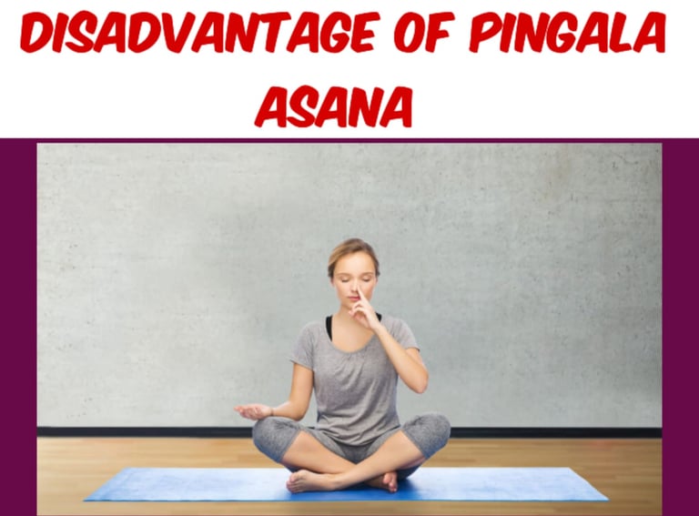 While Pingala Asana, a breathing exercise focused on inhaling through the right nostril to stimulate the Pingala Nadi (energy channel associated with active energy), offers many benefits, there are a few potential disadvantages or precautions that practitioners should be aware of. Like any yoga posture or pranayama practice, Pingala Asana may not be suitable for everyone, and in certain circumstances, it could have adverse effects. Here are some of the potential disadvantages or considerations when practicing Pingala Asana: 1. Overstimulation of the Sympathetic Nervous System: Pingala Asana primarily activates the sympathetic nervous system, which is responsible for the body's "fight or flight" responses. While this activation can be beneficial in terms of increasing energy and focus, for some individuals, especially those already experiencing heightened stress or anxiety, this stimulation may exacerbate those feelings. Over time, excessive activation of the sympathetic nervous system can lead to feelings of restlessness, irritability, or even physical symptoms such as elevated heart rate, blood pressure, and muscle tension. For individuals who are prone to anxiety or nervous tension, practicing Pingala Asana too frequently or intensely could lead to an imbalance in the autonomic nervous system, further aggravating stress and anxiety. This makes it essential to use the practice mindfully and in moderation, especially in times of emotional vulnerability or heightened stress. 2. Not Suitable for Certain Medical Conditions: Pingala Asana involves controlled breathing and the manipulation of nostril airflow, which may not be suitable for individuals with certain medical conditions, particularly those affecting the respiratory or cardiovascular systems. For example: i. Respiratory Issues: Individuals with respiratory conditions such as asthma, bronchitis, or chronic obstructive pulmonary disease (COPD) may find it challenging to practice Pingala Asana, especially if the controlled breathing technique exacerbates shortness of breath or discomfort. The deep inhalations and prolonged exhalations may put undue strain on the respiratory system. ii. Heart Conditions: People with heart issues, such as high blood pressure or irregular heart rhythms, should consult a healthcare provider before engaging in pranayama practices like Pingala Asana. The practice of focused breathing, which activates the sympathetic nervous system, may not be recommended for individuals with heart conditions due to the potential for increased heart rate and blood pressure. iii. Pregnancy: Pregnant women should be cautious when practicing Pingala Asana. While some breathing exercises are safe during pregnancy, the stimulation of the sympathetic nervous system may lead to discomfort or elevated heart rate, which could be unsafe for both the mother and baby. It is always advisable to consult a doctor before starting any new yoga or breathing practices during pregnancy. 3. Potential for Hyperventilation: As Pingala Asana encourages deep, slow breathing through one nostril, there is a potential risk of hyperventilation if the breath is forced or if the practitioner is not mindful of their inhalation and exhalation rhythms. Hyperventilation can lead to dizziness, lightheadedness, or a feeling of being ungrounded, especially if the breath becomes too rapid or shallow. It is crucial for practitioners to maintain a slow and steady breath throughout the practice to avoid this issue. New practitioners or those unfamiliar with pranayama practices may struggle with controlling the breath initially, potentially leading to an erratic breathing pattern. Hyperventilation can cause an imbalance in the oxygen and carbon dioxide levels in the blood, leading to symptoms such as tingling sensations, dizziness, or even fainting. 4. Difficulty in Finding the Right Balance: For some people, especially beginners, achieving the proper balance between relaxation and activation in Pingala Asana can be challenging. The goal of this practice is to stimulate the right nostril, but in doing so, it can sometimes lead to excess stimulation or a feeling of agitation. If not practiced mindfully, Pingala Asana may overactivate the body and mind, leading to discomfort rather than a sense of rejuvenation. Achieving the right balance between energizing and calming effects can take time, and without proper guidance, practitioners may end up feeling more stressed or overstimulated rather than revitalized. This is particularly true if they push themselves too hard or practice it for too long without proper awareness. 5. Excessive Dependence on the Right Nadi: While Pingala Asana is designed to activate the Pingala Nadi (right nostril channel), overusing this energy channel can potentially create an imbalance in the body. Yoga philosophy emphasizes the importance of balancing both the Ida (left nostril) and Pingala (right nostril) Nadis to achieve harmony within the body and mind. Focusing excessively on the right nostril could lead to an imbalance between the lunar (calming) and solar (energizing) energies. For holistic well-being, it is important to maintain a balance between both energy channels, and practitioners should avoid exclusively stimulating the Pingala Nadi without occasionally working with the Ida Nadi (through practices like left-nostril breathing) to restore balance. This ensures that one does not become overly energetic or ungrounded, which can lead to physical and emotional disturbances. 6. Not Suitable for Everyone’s Energy Type: In yogic practices, it is believed that different people have different "energy types" or doshas (Vata, Pitta, and Kapha). Pingala Asana, by stimulating the solar energy of the body, may not be suitable for all doshas. For example: i. Vata Types: People with a predominance of Vata energy tend to be naturally more energetic, and the stimulating effects of Pingala Asana could increase their restlessness or agitation. Vata t