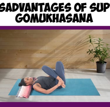 Supta Gomukhasana, or Reclining Cow Face Pose, is a restorative yoga pose that offers numerous benefits for flexibility, relaxation, and posture. However, like all yoga asanas, it is not suitable for everyone, and there are certain precautions and disadvantages to consider when practicing it. Although Supta Gomukhasana is generally considered safe, there are a few potential drawbacks or challenges that practitioners should be aware of to avoid injury or discomfort. Below are some of the disadvantages or limitations associated with this pose. 1. Not Suitable for People with Knee Injuries: Supta Gomukhasana involves a cross-legged position that places significant pressure on the knees. For individuals with existing knee injuries or conditions such as arthritis, meniscus tears, or patellar issues, this pose can exacerbate discomfort or even worsen the injury. The forced inward rotation of the thigh and the flexion of the knee may be too intense for those with sensitive knees. It is essential for individuals with knee problems to either avoid this pose or modify it using props, such as blocks or blankets, to provide cushioning and support to the knees. 2. Hip and Groin Tightness: While Supta Gomukhasana can be an effective stretch for the hips, it can also be challenging for those with tight hip flexors, glutes, or groins. The deep hip opening required in the pose can be uncomfortable or difficult for individuals who are not yet flexible in these areas. People with tight hips may find that they cannot align their knees properly, or they may experience discomfort in the outer hips, groins, or lower back as a result. In these cases, practicing the pose with support, such as placing a cushion or block under the top leg, can help, but some individuals may still find the stretch too intense. 3. Potential for Lower Back Strain: Supta Gomukhasana is beneficial for stretching the lower back, but it can also pose a risk for those who are prone to lower back pain. If the legs are not positioned correctly, or if there is too much force applied to the hips and legs during the stretch, it can lead to discomfort or strain in the lower back. Additionally, individuals with weak core muscles or spinal issues may find that they cannot maintain the proper alignment of the spine, which could contribute to further discomfort or even injury. It is important to engage the core muscles slightly and focus on maintaining a neutral spine during the pose to avoid undue pressure on the lower back. 4. Difficulty in Shoulder Flexibility: Supta Gomukhasana requires significant shoulder flexibility to clasp the hands behind the back. Individuals with tight shoulders, limited range of motion, or shoulder injuries may find it difficult or impossible to bring the hands together behind the back without straining. This limitation can lead to tension in the shoulders, neck, and upper back if forced. In some cases, practitioners may feel discomfort in the shoulder joints or may need to use a strap to bridge the gap between the hands. If shoulder flexibility is restricted, it may be better to practice the pose without clasping the hands or use props to support the arms in a less intense position. 5. Discomfort for Beginners: For beginners, Supta Gomukhasana can be challenging due to the deep stretches required in the hips, shoulders, and back. Beginners who have not yet developed flexibility in these areas may struggle to achieve the full expression of the pose or may experience discomfort in the hips, knees, or lower back. The cross-legged position may also feel awkward or uncomfortable for those who are not used to sitting in this way. In such cases, it is important to start slowly, using props and modifications, and not to push the body into a position that causes pain. Over time, flexibility will improve, but forcing the body into a deep stretch before it is ready could lead to injury. 6. Possible Neck Discomfort: The Reclining Cow Face Pose requires the practitioner to maintain the head on the mat while the arms reach behind the back. This can sometimes cause strain on the neck if the head is not properly supported or if the neck is not kept in a neutral position. Individuals with neck pain or stiffness should be particularly cautious when practicing this pose, as it may lead to increased discomfort in the neck area. If neck discomfort arises, placing a cushion under the head or avoiding the pose altogether may be necessary. 7. Limited Breathing Space: Supta Gomukhasana requires deep chest expansion and a stretch across the rib cage and shoulders. However, for some practitioners, the stretch can feel restrictive in the chest, especially if the shoulders or arms are stiff. This can limit the ability to breathe deeply, which may counteract some of the benefits of the pose. If a person feels tightness in the chest or has difficulty breathing while holding the position, it may be best to ease out of the pose or modify the arm position to allow for better breathing. 8. Not Ideal for Pregnant Women: Pregnant women should approach Supta Gomukhasana with caution, particularly in the later stages of pregnancy. The pressure on the abdomen and the deep hip opening could be uncomfortable or even unsafe during pregnancy. Lying on the back for extended periods can also reduce blood flow to the uterus, especially in the second and third trimesters, which can cause dizziness or discomfort. Pregnant women should consult their healthcare provider and avoid poses that place undue strain on the abdomen or involve lying on the back for long durations. 9. Risk of Overstretching: As with any deep stretch, there is a risk of overstretching in Supta Gomukhasana, especially for practitioners who are more flexible or push their limits too soon. Overstretching the muscles, especially in the hips or shoulders, can lead to muscle strain or ligament damage. It is crucial to listen to the body and avoid forcing the body into a position that causes pain. A ge