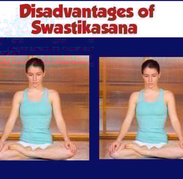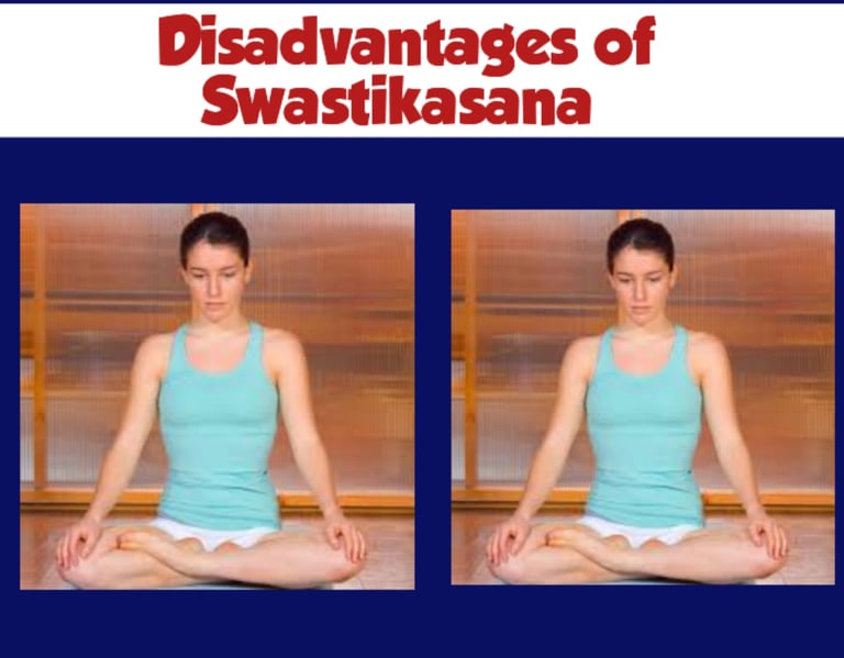 While Swastikasana, or the "Auspicious Pose," offers numerous benefits, it may also present certain disadvantages or challenges, especially for individuals with specific physical conditions or limitations. Although it is a relatively simple seated posture, improper practice or certain conditions can lead to discomfort or even exacerbate existing issues. Below are some potential disadvantages of Swastikasana. 1. Difficulty in Achieving Proper Alignment for Beginners: One of the most common challenges of Swastikasana is the difficulty beginners may face when attempting to fold their legs in the correct manner. The pose requires flexibility in the hips, knees, and ankles, and individuals who are new to yoga or have tight hips might find it difficult to achieve the proper alignment. This can lead to unnecessary strain, discomfort, or even injury if the posture is forced. For some people, especially those with limited flexibility or mobility, sitting with crossed legs may feel uncomfortable or cause discomfort in the hips or knees. 2. Knee Discomfort or Strain: Swastikasana involves folding the legs in a cross-legged position, which may place pressure on the knees. Individuals who have knee issues, such as arthritis, joint pain, or injuries, may experience discomfort or pain while holding the pose. The pressure on the knee joints could exacerbate existing conditions or lead to strain if the legs are positioned too forcefully. In such cases, sitting in Swastikasana for extended periods may not be advisable. 3. Hip and Groin Tightness: While Swastikasana is beneficial for opening the hips and stretching the groin, it can also cause discomfort for individuals who have tight hips, especially if they do not have the required flexibility. For people with limited hip flexibility or those who sit for long periods each day, the deep flexion required in Swastikasana might result in tightness, soreness, or strain in the hip area. If the pose is not practiced with proper alignment and without props for support, it can lead to overstretching of the hip flexors or groin muscles. 4. Circulation Issues in the Legs: While Swastikasana is generally good for circulation, improper positioning or holding the pose for too long can cause temporary restriction of blood flow to the legs, especially if the legs are crossed too tightly. If blood circulation is compromised, it may lead to numbness, tingling sensations, or a feeling of heaviness in the legs. People who suffer from poor circulation or conditions like varicose veins might find it difficult to sit comfortably in this pose for extended periods, as the restricted blood flow can worsen these conditions. 5. Lower Back Strain: Although Swastikasana is designed to promote good posture, individuals with lower back issues may find it difficult to sit upright for an extended period. The posture requires the spine to remain erect, and if the core muscles are not engaged or if the pelvis is not tilted slightly forward, it can lead to lower back strain. Individuals with herniated discs, sciatica, or general lower back discomfort may experience aggravation of their symptoms if they attempt this pose without the proper support or alignment. 6. Difficulty for Pregnant Women: Pregnant women, particularly in the later stages of pregnancy, may find Swastikasana uncomfortable or impractical due to the pressure it places on the lower abdomen and pelvic region. Sitting with crossed legs for an extended period can cause strain on the hips, groin, and lower back, which may be exacerbated by the additional weight and changes in posture associated with pregnancy. In such cases, modified versions of the pose or other more suitable asanas may be recommended for comfort. 7. Limited Benefit for Those with Severe Flexibility Issues: For individuals with significant flexibility limitations or certain physical disabilities, Swastikasana may not provide much benefit or could even be counterproductive. The pose requires some level of hip flexibility, and without it, the posture may not be sustainable. For those who cannot cross their legs comfortably, the pose may feel overly strenuous or lead to an inability to maintain the position for a meaningful period. It is important to ensure that the posture does not cause pain or excessive discomfort, as this can hinder rather than enhance the practice. 8. Not Ideal for Those with Poor Balance: While Swastikasana is generally a stable seated posture, those who struggle with balance or core strength may find it difficult to hold the position for long periods. The pose requires both physical stability and mental focus, and individuals with poor core strength or balance issues may find it challenging to remain upright without slouching or collapsing the chest. This can lead to discomfort or strain in the back, neck, or shoulders. 9. Not Recommended for Certain Medical Conditions: People with certain medical conditions, such as hernias, significant lower back pain, or severe knee problems, may be advised to avoid or modify Swastikasana. These individuals may experience exacerbated symptoms or may not find the pose suitable for their body type. It is important to consult a healthcare professional or a knowledgeable yoga instructor before attempting the pose if there are concerns about any underlying medical conditions. Conclusion: While Swastikasana is a valuable and accessible posture for many practitioners, it does have potential disadvantages, particularly for those with tight hips, knee issues, lower back pain, or limited flexibility. It is crucial to practice the pose with proper alignment and modification, using props such as cushions or blankets for support when necessary. As with any yoga posture, it is important to listen to your body and avoid forcing the pose if it causes discomfort. By making adjustments to suit individual needs and conditions, Swastikasana can be a highly beneficial and effective posture for improving flexibility, posture,
