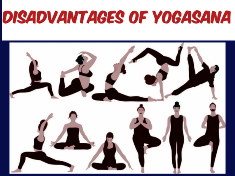While yogasana offers numerous benefits for physical, mental, and emotional health, it is important to acknowledge that, like any form of exercise, it can also have certain disadvantages or risks, especially if practiced incorrectly or without proper guidance. Here are some of the potential disadvantages and challenges of practicing yogasana: 1. Risk of Injury: i. Injuries from Incorrect Alignment: One of the most common risks of practicing yogasana is the potential for injury due to incorrect alignment. Improper form while performing postures can strain muscles, ligaments, and joints. For example, performing poses like the Forward Bend (Uttanasana) or Downward Dog (Adho Mukha Svanasana) without proper alignment can lead to lower back pain, hamstring injuries, or shoulder strain. Many beginners may not be aware of subtle misalignments, which can lead to over-stretching or joint stress. ii. Overextending the Body: Another potential danger is pushing the body too far during postures, especially for beginners or those with limited flexibility. Overextending in certain poses, such as deep backbends or intense twists, can lead to muscle strains, ligament sprains, or even joint dislocation. It is essential to practice with caution and gradually increase the intensity of poses to prevent injury. iii. Worsening Pre-existing Conditions: For individuals with existing health conditions such as joint instability, arthritis, or chronic back pain, certain yogasanas can aggravate these issues. Some postures may place excessive stress on vulnerable areas, exacerbating discomfort or injury. For example, individuals with knee problems should avoid postures that involve deep squatting or intense leg stretches without proper modifications. 2. Lack of Proper Instruction: i. Unsupervised Practice: Practicing yogasana without the guidance of an experienced instructor can be risky. Improper understanding of techniques, breathing patterns, and body alignment may lead to ineffective practice or injury. Many yoga poses require subtle adjustments that can be difficult to achieve without the help of a teacher. Beginners, in particular, might struggle to understand their body’s limits or the fine nuances of each asana, increasing the risk of strain or injury. ii. Online or Self-Study Risks: While online yoga classes and tutorials are convenient, they can sometimes be misleading or lack the personalized attention needed to ensure proper form and technique. Following online videos without feedback from a qualified instructor may result in poor posture execution, particularly for beginners, which could lead to injuries. 3. Physical Limitations: i. Not Suitable for Everyone: Although yoga is known for being adaptable, some people may find that it is not suitable for their current physical condition. People with severe joint problems, osteoporosis, or certain chronic illnesses may struggle to practice yogasana effectively. For these individuals, performing certain poses could lead to worsening of symptoms or injury. For example, individuals with osteoporosis should avoid certain poses that put excessive pressure on the bones, such as inversions or deep twists. ii. Physical Exhaustion: While yoga is generally considered a gentle form of exercise, some styles, such as Vinyasa or Ashtanga yoga, can be physically demanding. These forms of yoga involve rapid movement between postures, which may be challenging for beginners or people with low endurance levels. This can result in fatigue or muscle soreness, particularly for those who are not accustomed to regular physical activity. 4. Mental Challenges: i. Frustration and Disappointment: Yoga requires patience, practice, and gradual progress. Some individuals may become frustrated if they do not see immediate results in terms of flexibility, strength, or mental clarity. The pressure to achieve certain postures or progress quickly may lead to feelings of inadequacy, disappointment, or discouragement. This is especially true for those with perfectionist tendencies, who may push themselves too hard and risk injury. ii. Mental Overwhelm: For beginners, the mindfulness and meditative aspects of yoga can be overwhelming, particularly if one is not used to slowing down or focusing deeply. Trying to balance physical postures with controlled breathing and mental focus may create a sense of mental overload for some practitioners. In such cases, the experience may feel stressful rather than calming, which could deter continued practice. 5. Overemphasis on Flexibility: i. Prioritizing Flexibility Over Strength: In some styles of yoga, particularly those that emphasize deep stretches, there can be an overemphasis on achieving flexibility. While flexibility is an important aspect of yoga, it should not come at the cost of strength. Focusing too much on stretching can lead to imbalances, as flexibility alone is not enough to support the body in postures. Inadequate strength can increase the risk of injury, particularly in the lower back, shoulders, and knees. ii. Tight Muscles and Overstretching: On the other hand, some individuals, especially those with tight muscles, may overcompensate by forcing themselves into deep stretches in an attempt to increase flexibility quickly. This can lead to overstretching, which damages the muscle fibers and connective tissues, potentially causing strains or tears. 6. Inappropriate for Certain Health Conditions: i. Heart Conditions and High Blood Pressure: Some types of yoga, especially those involving rapid movement or inversions, may not be suitable for individuals with heart conditions or high blood pressure. Poses like headstands or shoulder stands can increase pressure in the head and heart, potentially leading to complications for individuals with these conditions. It is always advisable for people with heart-related health issues to consult a healthcare provider before starting yoga. ii. Pregnancy Considerations: Pregnant women should exercise cautio
