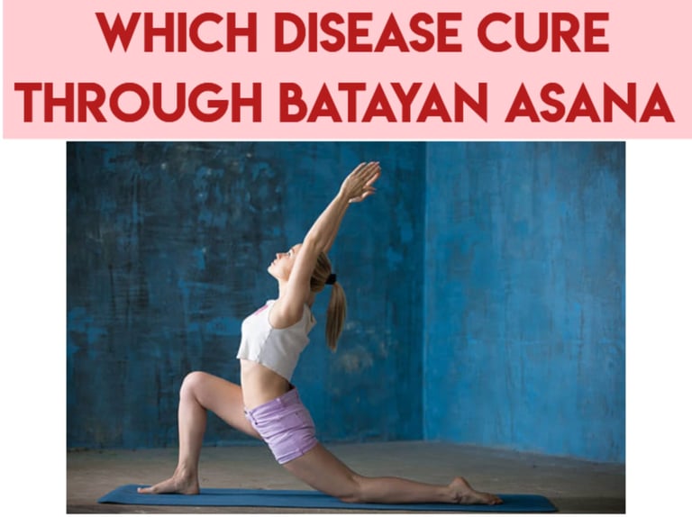 Batayan Asana, or Crescent Moon Pose, is a dynamic yoga posture that stretches and strengthens the body while promoting balance and flexibility. As with many yoga practices, Crescent Moon Pose can have a positive impact on a variety of physical and mental health conditions. Although yoga is not a substitute for medical treatment, regular practice of Batayan Asana may complement conventional therapies and provide relief from certain conditions. Below is an overview of the health conditions that may benefit from Batayan Asana: 1. Lower Back Pain Crescent Moon Pose is particularly beneficial for individuals suffering from lower back pain. The posture helps stretch the hip flexors and the muscles along the sides of the back, including the obliques and quadratus lumborum, which are often tight in people who sit for long periods. The deep lunge and torso extension help lengthen the spine, release tension in the lower back, and encourage better posture. Regular practice of this asana can improve spinal alignment, relieve muscle stiffness, and reduce discomfort associated with chronic lower back pain. However, practitioners should ensure proper alignment to avoid straining the lower back further. 2. Hip Tightness and Hip Flexor Strain Batayan Asana provides an excellent stretch for the hip flexors, which can become tight from prolonged sitting or certain physical activities. The deep lunge position opens the hips and stretches the quadriceps, providing relief for individuals who suffer from tightness in the hip region. Over time, practicing Crescent Moon Pose can help alleviate discomfort caused by restricted hip mobility and improve flexibility. This is particularly beneficial for people who experience pain or stiffness in the hips, such as those with conditions like hip bursitis or hip impingement. 3. Knee Pain For people with mild knee pain or discomfort, Batayan Asana can help strengthen the muscles around the knee joint and improve alignment. The position of the body in the lunge helps engage the quadriceps and hamstrings, which provide stability to the knee. This can be especially beneficial for those with patellofemoral pain syndrome (often called "runner’s knee") or other knee issues caused by weak supporting muscles. However, it's crucial that practitioners maintain proper alignment of the knee to avoid exacerbating the pain. The front knee should not extend past the toes, and the knee should be kept in line with the ankle. 4. Digestive Issues The Crescent Moon Pose involves a deep stretch of the torso and the abdomen, which can help stimulate the digestive system. By expanding the abdomen and increasing blood flow to the digestive organs, Batayan Asana encourages healthy digestion and may aid in alleviating issues such as constipation, bloating, or indigestion. The compression and release in the abdominal area during the pose can also improve the overall function of the intestines and support regular bowel movements. Additionally, the deep breathing associated with this pose can enhance the parasympathetic nervous system, promoting rest and digestion. By reducing stress and tension, Crescent Moon Pose may also indirectly help improve digestion, as chronic stress is often linked to digestive disturbances. 5. Stress and Anxiety Batayan Asana, like many other yoga postures, is a valuable tool for managing stress and anxiety. The combination of physical movement, deep stretching, and controlled breathing helps activate the parasympathetic nervous system, which calms the body and mind. Holding the Crescent Moon Pose requires focus and mindfulness, which can shift the attention away from stressful thoughts and promote mental clarity. Additionally, the deep stretch in the torso and chest helps release built-up tension, promoting a feeling of relaxation. Over time, practicing Batayan Asana can help reduce levels of anxiety, improve mood, and foster a sense of emotional well-being. 6. Postural Problems For people with poor posture, Crescent Moon Pose can be highly beneficial. The pose involves lifting the chest, elongating the spine, and opening the shoulders, all of which counteract the slumping or hunching that can result from long hours of sitting or poor alignment. Regular practice of Batayan Asana can help strengthen the muscles that support the spine, promote better alignment, and improve overall posture. This is particularly helpful for individuals who suffer from kyphosis (rounded shoulders) or swayback (excessive curve in the lower back). By incorporating this pose into a regular yoga routine, practitioners can work toward developing a more upright and confident posture. 7. Shoulder Tightness Crescent Moon Pose involves reaching the arms overhead and stretching to one side, which opens up the shoulders and helps release tension in this area. For individuals who carry stress in the shoulders or experience stiffness from repetitive movements (e.g., working at a computer or lifting heavy objects), this asana can provide relief. By stretching the chest and shoulders, Batayan Asana helps to improve shoulder mobility and flexibility. It also counteracts the effects of rounded shoulders or forward head posture, which are common issues for people with sedentary lifestyles. 8. Improved Circulation and Lymphatic Flow Batayan Asana can enhance circulation throughout the body, particularly in the arms, legs, and torso. The deep stretch and elevation of the arms allow for better blood flow, while the stretching of the hip flexors and thighs encourages circulation in the lower body. Improved circulation supports overall cardiovascular health and can help reduce symptoms of poor circulation, such as cold hands and feet. The deep stretching and opening of the chest also aid in better lymphatic drainage, promoting the removal of toxins and improving immune system function. 9. Fatigue and Low Energy By stimulating the chest and diaphragm, Crescent Moon Pose encourages deeper breathing, which can help 