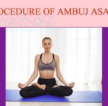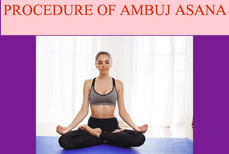 Ambuj Asana additionally known as the Lotus Pose, is an arranged yoga posture that is significantly related with consideration, concentration, and loosening up. It is a routine Asana that symbolizes ideals and otherworldly stimulating, and is commonly utilized for postponed sitting in the midst of consideration sharpens. The title “ Ambuj” suggests “lotus” in Sanskrit, and this posture is acknowledged to offer help the proficient fulfill a state of mental clarity and inner peace. Steps to Perform Ambuj Asana: 1. Preparation: Begin by sitting on the floor or yoga tangle in a comfortable position, ensuring your spine is straight , and your body is relaxed. Keep your legs expanded out in front of you. Place your hands on your thighs, palms standing up to upward, in a free Mudra (gesture). Focus on your breathing for a few minutes, breathing in significantly and breathing out continuously, to arrange the body and judgment skills for the practice. 2. Arranging the Legs: Gently turn your right knee and put your right foot on your cleared out thigh. The sole of your right foot should to go up against upward and be arranged close to the groin locale, with the heel towards the abdomen. Next, bend your cleared out knee and bring the cleared out foot over the right thigh, arranging the cleared out foot in the same way with the sole standing up to upward and near the groin area. The heels of both feet should to be as close to the guts as conceivable without bother. The thighs should to remain free , and the knees should to softly touch the floor. 3. Aligning the Spine: Keep your back straight and your shoulders relaxed. Imagine a string pulling up from the crown of your head, creating length through your spine. Align your neck and head so that they are in a neutral position, not tilting forward or backward. Your chin should be slightly tucked in to lengthen the neck and maintain balance. Avoid slouching or hunching the back. Focus on maintaining an upright posture. 4. Hand Placement: Place your hands on your knees, with the palms facing upward or in a Mudra, such as Nana Mudra (thumb and index finger touching). Your fingers should be relaxed, not tensed, and the rest of the body should remain still. 5. Breathing: Close your eyes and focus on your breath. Practice slow, deep breathing ( Pranayama), inhaling through the nose and exhaling through the mouth. Ensure that your breath is deep, calm, and steady. Continue to focus on the breath and bring your awareness inward. 6. Hold the Pose: Maintain this position for as long as is comfortable, especially if you are practicing meditation. Beginners may start with a few minutes and gradually increase the duration as the body becomes accustomed to the posture. It is important to remain still and focused during this time. Any discomfort should be addressed by gently coming out of the pose and modifying it as needed. 7. Coming Out of the Pose: When you are ready to release the pose, gently and carefully uncross your legs. Stretch them out in front of you, slowly and mindfully, and shake them gently to release any tension. You can also perform an counter-pose like Paschimottan asana (Seated Forward Bend) to stretch the back and legs after sitting in Lotus Pose for an extended period. Precautions: If you have knee or ankle issues, avoid practicing this pose or use props (like cushions or blocks) to make the posture more comfortable. Individuals with severe hip flexibility limitations may find it difficult to perform Ambuj asana initially, so modifications or other seated postures may be more appropriate. Avoid forcing the legs into position, as it can strain the joints and muscles. Ambuj asana is a powerful practice for both the body and the mind. By cultivating patience and persistence, practitioners can experience its calming and meditative benefits over time.
