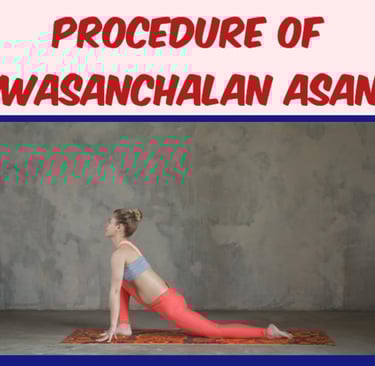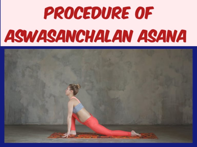 Aswasanchalanasana, also known as the Horse Riding Pose, is a dynamic yoga posture that is part of the Surya Namaskar (Sun Salutation) sequence. It is a lunge pose that involves deep stretching of the lower body, while also engaging the core and promoting flexibility. To perform Aswasanchalanasana correctly, it is important to focus on breath, alignment, and gradual progression in the pose. Below is a step-by-step guide to practicing Aswasanchalanasana: Step-by-Step Procedure 1. Start in a Standing Position (Tadasana): i. Start by standing tall with your feet together, arms by your sides, and weight equally distributed on both feet. This is the basic standing posture, Tadasana (Mountain Pose). ii. Ensure your spine is straight, shoulders are relaxed, and your chest is open. Take a few deep breaths to center your body and mind. 2. Move into the Forward Fold (Uttanasana): i. Breathe in deeply and as you exhale, bend forward from your hips to bring your hands to the floor. If necessary, bend your knees slightly to allow the palms to reach the ground. ii. This is the Uttanasana (Standing Forward Fold) position. Make sure your head is relaxed, and the neck is elongated. 3. Step Your Right Foot Back (Lunge Position): i. As you inhale, take a big step back with your right foot, so that your right knee is now hovering above the floor. The left knee should be bent at a 90-degree angle, with your left thigh parallel to the ground. ii. Your right leg should be straight, with the toes pointing down toward the floor. Ensure that your right foot is flat, and your body weight is balanced on the left foot. iii. Keep your hips square, facing forward. Engage the core muscles to support the lower back. 4. Lift the Torso and Open the Chest: i. As you inhale, raise your torso upright, bringing your hands to your hips. Keep your back straight and avoid arching your lower back. ii. Open your chest, lifting your sternum and drawing the shoulder blades down the back. Ensure that your core is active, and your torso is aligned above the hips. 5. Extend Your Arms (Optional): i. If you feel comfortable, you can extend your arms upwards, reaching your fingers toward the ceiling. This will enhance the stretch through your chest, shoulders, and arms. ii. Alternatively, you can keep your hands on your hips for stability or place them on the ground for support, depending on your flexibility and strength level. 6. Hold the Pose and Breathe: i. Stay in the Horse Riding Pose for 5-10 breaths, depending on your level of comfort. Keep your gaze straight ahead or slightly upward, depending on the neck's comfort level. ii. During this time, engage your leg muscles, especially the quadriceps and glutes, to deepen the stretch and improve balance. iii. Maintain a steady, deep breath throughout the pose. Inhale to lengthen the spine, and exhale to deepen the stretch. 7. Transition to the Other Side: i. To exit the pose, exhale and gently bring your hands back down to the floor. Step your right foot forward to meet the left foot, returning to Uttanasana (Standing Forward Fold). ii. Inhale and repeat the pose on the other side by stepping the left foot back into the lunge position, mirroring the steps on the right leg. Ensure your body is symmetrical, and focus on keeping the hips squared to the front. 8. End in Tadasana: i. After completing both sides, bring your feet together and return to the standing position of Tadasana. Take a moment to observe how your body feels, breathing deeply to relax. Tips for Proper Alignment and Safety: Knee Alignment: In the lunge position, ensure that the front knee (left knee) does not extend beyond the toes. Keep it aligned with your ankle. This makes a difference prevent strain on the knee joint. Back Leg Activation: Ensure the back leg (right leg) is straight, with the heel of the right foot pressing down toward the floor. Avoid collapsing the back leg or letting the knee touch the ground. Core Engagement: Engage the core muscles throughout the pose to protect the lower back. Keep your pelvis neutral and avoid excessive arching of the lower back. Breath Awareness: Use deep, rhythmic breathing to help you maintain balance and deepen the stretch. Breathe in as you rise into the pose, and exhale to settle into it. Modifications: If you have knee pain or flexibility issues, feel free to use yoga props such as blocks or cushions to support your hands or knees, or perform the pose with a gentler range of motion. Conclusion: Aswasanchalanasana (Horse Riding Pose) is a powerful yoga posture that strengthens the legs, improves flexibility, and opens the hips. By following the steps outlined above, maintaining proper alignment, and focusing on your breath, you can safely and effectively practice this pose. Over time, consistent practice can help you build strength, increase flexibility, and improve overall body awareness. Whether you're a beginner or an experienced practitioner, Aswasanchalanasana is a beneficial addition to any yoga routine.