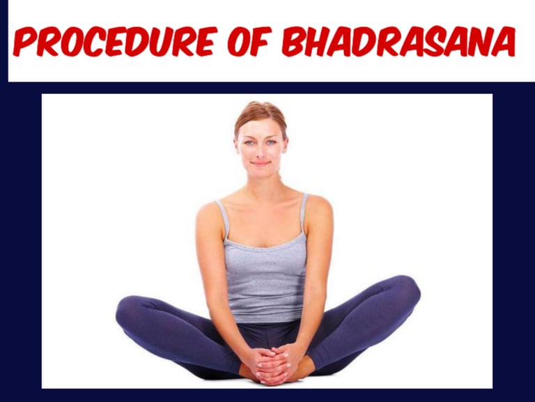 Bhadrasana, also known as the "Gracious Pose," is a seated yoga posture that focuses on opening the hips, improving flexibility, and promoting mental calmness. It is relatively simple to perform, but requires attention to alignment and mindful breathing. The following is a step-by-step guide on how to practice Bhadrasana correctly: Step-by-Step Procedure for Bhadrasana 1. Begin in a Comfortable Seated Position: Start by sitting on the floor with your legs extended straight out in front of you. Sit in a comfortable seated position, ensuring that your spine is erect and aligned with your hips. You may sit on a yoga mat or cushion for comfort, especially if your hips are tight. Keep your hands resting on your knees or thighs with your palms facing upward or downward, whichever feels more natural. 2. Bring Your Feet Together: Slowly bend your knees and bring the soles of your feet together, allowing your knees to fall outwards. Try to bring your feet as close to your pelvis as possible without straining. The soles of your feet should be in contact with each other, and your knees should point out to the sides. This creates a diamond shape with your legs. 3. Adjust Your Spine: Once your feet are positioned correctly, focus on lengthening your spine. Sit tall, making sure that your head is aligned with your spine. Engage your core slightly to help maintain an upright posture. Keep your shoulders relaxed and avoid rounding your back. The chest should be open, and your body should be in a neutral position. 4. Position Your Hands: Place your hands on your feet, holding the toes or outer edges of your feet with your fingers. Alternatively, you can place your hands on your knees, with your palms facing upwards or resting comfortably on your thighs. Keeping your hands in contact with your feet or knees can help you stay grounded and enhance the feeling of stability. 5. Focus on Your Breath: Close your eyes gently, and begin to focus on your breath. Breathe deeply and slowly, inhaling through your nose and exhaling through your nose. Allow the breath to be smooth and even. As you breathe, try to bring awareness to the stretch in your groins and hips, letting the breath deepen the stretch. The deep breathing helps relax the body and calm the mind. 6. Hold the Pose: Once you are in the position, hold the pose for a comfortable duration. Start with holding the posture for 30 seconds to 1 minute. As you practice regularly, you can increase the duration, holding the pose for up to 5 minutes, depending on your flexibility and comfort level. During this time, maintain a steady focus on your breath and try to deepen the stretch in your thighs and hips. 7. Release the Pose: To release the pose, gently bring your knees together and extend your legs out in front of you. Take a few deep breaths to relax and let go of any tension that may have built up during the practice. You can perform some gentle stretches or a counterpose, such as Paschimottanasana (Seated Forward Fold), to release any residual tension from the lower back and hips. Important Tips for Practicing Bhadrasana: 1. Maintain a Straight Spine: It is essential to keep your spine erect throughout the practice. Avoid slouching or leaning back, as this could put unnecessary strain on your lower back. 2. Don’t Force the Stretch: If your hips are tight, avoid pushing your knees down forcefully. Instead, work within your limits and allow the hips to gradually open over time. You can also sit on a cushion to help tilt the pelvis forward and make the posture more accessible. 3. Focus on Breath Awareness: The key to unlocking the full benefits of Bhadrasana is mindful breathing. Use your breath to deepen the stretch, relax the mind, and release any tension in the body. 4. Be Mindful of Your Knees: Your knees should fall towards the ground naturally. Do not force them down to touch the floor. If your knees are significantly raised, you can sit on a cushion or block to elevate the pelvis slightly, making the pose more comfortable. 5. Practice Regularly: Like many yoga postures, consistency is essential. Practicing Bhadrasana regularly helps to increase flexibility, improve posture, and promote mental calmness over time. Conclusion: Bhadrasana is a simple yet effective yoga pose that offers a wide range of physical and mental benefits. By practicing this pose with mindfulness and awareness of your breath, you can enhance flexibility, improve posture, and achieve a sense of mental clarity. With regular practice, Bhadrasana can become a valuable part of your yoga routine, helping you cultivate a deeper sense of peace and relaxation.