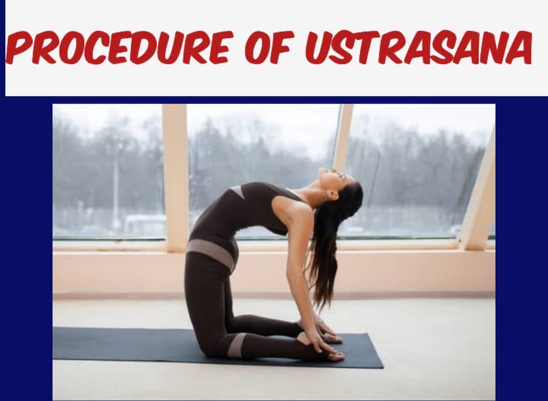 Ustrasana, or Camel Pose, is a backbend that stretches and opens the front of the body while strengthening the back muscles. The procedure for performing Ustrasana should be followed with caution, as it requires flexibility in the spine and hips, as well as strength in the back and legs. To practice Ustrasana safely, it’s important to follow the step-by-step instructions carefully. Below is a detailed guide for performing Ustrasana: Step-by-Step Procedure: 1. Begin in a Kneeling Position: Begin by kneeling on the mat with your knees hip-width apart. Ensure your thighs are perpendicular to the floor and your hips are directly over your knees. Keep your toes pointed and the tops of your feet flat on the ground. Place your hands on your hips, fingers facing downward, and draw your elbows back slightly to open up the chest. 2. Engage Your Core and Lengthen Your Spine: Before you move into the backbend, engage your core muscles to support your spine. Imagine elongating the spine, lifting up through the crown of your head, and drawing the pelvis slightly forward to create a neutral pelvic position. This will help to avoid excessive arching in the lower back and support a smooth and controlled movement into the backbend. 3. Begin the Backbend: Inhale deeply to prepare, and as you exhale, gently begin to lean back from the upper back. Keep your chest lifted and your spine extending upward. As you continue to bend backward, make sure to avoid collapsing the lower back by keeping the pelvis slightly tilted forward. The goal is to create an arch in the upper back while maintaining a natural curve in the lower back. 4. Reach for Your Heels: Slowly reach your hands back toward your heels, keeping your arms straight. If you are unable to reach your heels at first, you can place your hands on the lower back for support, just above the hips. With time and flexibility, you’ll be able to reach your heels, but never force the stretch. It’s more important to maintain a healthy backbend than to try to reach your feet too quickly. 5. Open Your Chest and Engage Your Thighs: Once your hands are on your heels (or your back), allow your chest to open even further. Press your thighs forward to lift the hips, and avoid letting your knees splay out to the sides—your knees should stay hip-width apart. Keep your elbows bent and pointed down toward the floor to maintain stability. Keep your gaze upwards or slightly backward, but avoid over-arching the neck. The chest and heart should be open, and your throat should feel relaxed. 6. Breathe Deeply: While in the pose, take deep, steady breaths. Inhalations should fill your lungs, expanding the chest even more. Exhalations should help you deepen the backbend. Breathe evenly and calmly, and remain in the pose for 20 to 30 seconds, or as long as it feels comfortable. If you are new to this pose, start with shorter holds, gradually increasing the time as your flexibility and strength improve. 7. Slowly Release from the Pose: To exit the pose, bring your hands back to your hips or lower back for support. Gently lift your torso back to an upright kneeling position, allowing the spine to return to its neutral position slowly. Keep your core engaged to avoid any jerky movements. Once upright, sit back on your heels in a resting pose like Balasana (Child’s Pose) to counteract the backbend and allow the spine to relax. Modifications and Variations: i. Support with Blocks: If you are unable to reach your heels, you can place a yoga block under each hand or between your heels for support. This allows you to feel the benefits of the pose without overstretching. ii. Using a Wall: If you have difficulty balancing or reaching your hands to your heels, practice Ustrasana with your back against a wall. This provides support and helps you understand the correct position of your spine and chest. iii. Hand on the Lower Back: If reaching for your heels is too intense, place your hands on the lower back (instead of reaching for the feet) for support, focusing on arching your upper back and opening the chest without stressing the lower back. Precautions: i. Avoid if you have back, neck, or knee injuries: Ustrasana requires flexibility in the back and knees, so it’s important not to practice it if you have any issues in these areas without consulting a healthcare provider. ii. Avoid Overarching: Be mindful not to over-arch the lower back. Keep your pelvis engaged and avoid collapsing your lumbar spine by keeping a slight tilt forward in the hips. iii. Practice with Caution: It’s important to warm up properly before performing Ustrasana, as backbends can be intense for the spine and muscles. Ensure your body is adequately prepared by performing gentle stretches for the hips, spine, and shoulders beforehand. Conclusion: Ustrasana (Camel Pose) is a powerful asana that requires balance, flexibility, and strength. By following the procedure carefully and ensuring proper alignment, you can reap the many benefits of this pose, such as opening the chest, increasing spinal flexibility, and improving posture. Consistent practice of Ustrasana can help to build strength and flexibility in the back, alleviate tension, and reduce stress, making it a valuable addition to your yoga practice. Always listen to your body and modify the posture as needed to suit your current level of flexibility and strength.