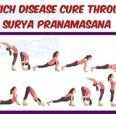 Surya Pranamasana, or Sun Salutation, is a traditional yoga sequence consisting of twelve interconnected postures, each designed to promote flexibility, strength, and mindfulness. When practiced regularly, this sequence not only enhances physical fitness but also contributes to healing and the management of various health conditions. Surya Pranamasana is particularly beneficial for diseases related to stress, muscular imbalances, digestive issues, respiratory conditions, and overall wellness. Below are some of the health conditions that may be alleviated or improved through the regular practice of Surya Pranamasana. 1. Musculoskeletal Issues: Surya Pranamasana is excellent for addressing a wide range of musculoskeletal problems. The postures work to strengthen muscles, improve flexibility, and enhance joint mobility. Regular practice can help manage the following conditions: i. Back Pain: Sun Salutation incorporates several backbends, forward bends, and stretches that gently stretch and strengthen the spine, improving posture and alleviating tension in the lower back. For those suffering from chronic back pain, especially in the lumbar region, Surya Pranamasana can be highly beneficial. The movements stimulate the muscles around the spine, promoting relief from stiffness and discomfort. ii. Joint Pain and Arthritis: Surya Pranamasana involves gentle movements that promote the flow of synovial fluid, which lubricates the joints. This can improve joint flexibility and reduce stiffness, benefiting people with conditions such as arthritis. The practice's focus on fluid movement helps prevent further joint deterioration while maintaining mobility. iii. Muscle Tension: The sequence of postures helps relieve muscle stiffness, especially in the shoulders, neck, and hips. This is particularly useful for people with tension due to stress or repetitive movements. Through improved circulation and muscle stretching, Surya Pranamasana can promote muscle relaxation and ease discomfort. 2. Digestive Disorders: Sun Salutation is known to stimulate the digestive system, promoting better digestion and relief from several digestive ailments: i. Constipation: The forward bends and twists in Surya Pranamasana massage the abdominal organs and stimulate peristalsis (the wave-like contractions of the intestines), which aids in moving food through the digestive tract. This can be especially beneficial for people suffering from constipation, as it helps to improve bowel regularity. ii. Indigestion and Gas: By engaging the abdominal muscles and promoting deep breathing, Surya Pranamasana helps stimulate the digestive organs, encouraging better digestion and the reduction of gas and bloating. The forward bending and twisting movements can also help alleviate discomfort caused by indigestion. iii. Acid Reflux: Practicing Surya Pranamasana can strengthen the diaphragm and encourage proper posture, which may help prevent acid reflux or gastroesophageal reflux disease (GERD). The stretching and toning of the abdominal muscles during the sequence promote better digestion and can reduce symptoms of acid reflux. 3. Respiratory Disorders: Surya Pranamasana is a powerful practice for improving lung capacity and respiratory health: i. Asthma: Sun Salutation incorporates deep, rhythmic breathing (pranayama) with physical movement, which can improve lung function and oxygen intake. The flow of postures helps expand the chest and lungs, making it easier for individuals with asthma to breathe more deeply. By enhancing the capacity of the lungs, Surya Pranamasana can help reduce the frequency and severity of asthma attacks. ii. Chronic Bronchitis and COPD: For individuals suffering from chronic obstructive pulmonary disease (COPD) or bronchitis, Surya Pranamasana can help with better lung expansion and increased airflow. The practice improves respiratory muscle strength, clears the airways, and promotes more efficient breathing, which is vital for those with chronic respiratory conditions. 4. Cardiovascular Health: The flowing nature of Surya Pranamasana, combined with controlled deep breathing, promotes heart health and improves cardiovascular function: i. High Blood Pressure: Regular practice of Surya Pranamasana helps to lower blood pressure by reducing stress and improving circulation. The combination of movement and breathing encourages relaxation and reduces the body's sympathetic "fight-or-flight" response, which helps bring high blood pressure levels under control. ii. Heart Disease: Sun Salutation improves heart health by increasing cardiovascular endurance and circulation. The increased heart rate during the practice promotes better blood flow, which can benefit individuals with a history of heart disease. However, it’s important for people with severe cardiovascular conditions to consult a healthcare provider before attempting any vigorous physical activity. 5. Mental Health Disorders: The physical and mental benefits of Surya Pranamasana are profound, especially for those suffering from mental health conditions: i. Stress and Anxiety: The sequence’s focus on breathwork (pranayama) and mindful movement helps activate the parasympathetic nervous system, reducing the stress hormone cortisol. This promotes relaxation and alleviates symptoms of stress and anxiety. By focusing on the breath and movement, individuals are encouraged to be present, which helps release mental tension. ii. Depression: Regular practice of Surya Pranamasana boosts the production of endorphins (the body’s natural “feel-good” hormones), improving mood and emotional well-being. The sequence can be especially helpful in reducing feelings of sadness or depression by improving overall energy levels and increasing feelings of calm and happiness. iii. Insomnia: Since Sun Salutation encourages relaxation, it can help individuals suffering from insomnia or poor sleep quality. The practice regulates the body’s circadian rhythm, promotes better sle